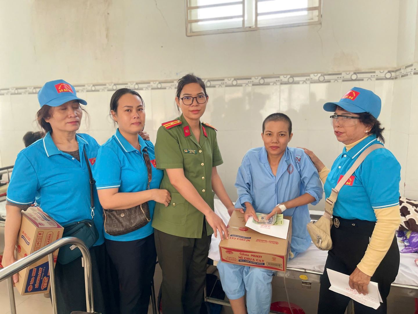 Nhằm lan tỏa tinh thần đoàn kết “tương thân, tương ái”, Phòng An ninh điều tra phối hợp cùng nhóm thiện nguyện Lá Bồ đề đến từng giường bệnh trao tặng quà cho các bệnh nhân Khoa Lão và Khoa Ngoại tổng hợp. Tại đây, Đoàn đã ân cần hỏi thăm tình hình sức khỏe cũng như hoàn cảnh gia đình của các bệnh nhân và động viên tinh thần các bệnh nhân đang điều trị vượt qua nỗi đau của bệnh tật, vươn lên trong cuộc sống.