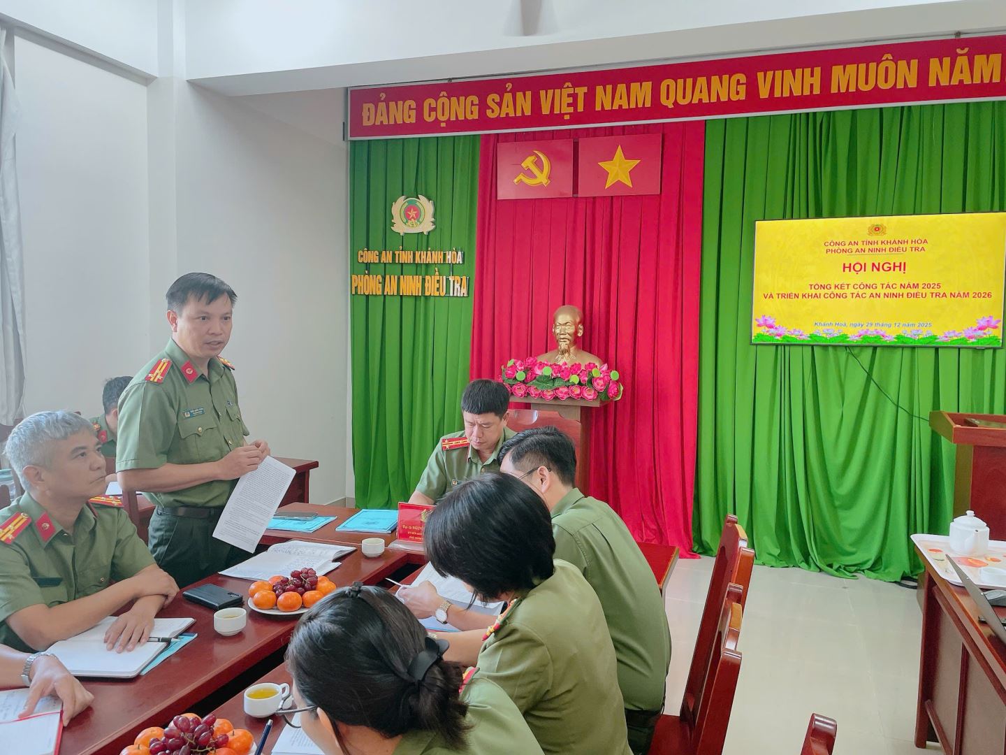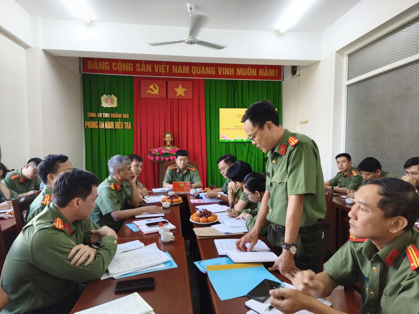 Đồng chí Đại tá Nguyễn Đình Thuận Hải – Phó Giám đốc, Thủ trưởng Cơ quan An ninh điều tra phát biểu chỉ đạo