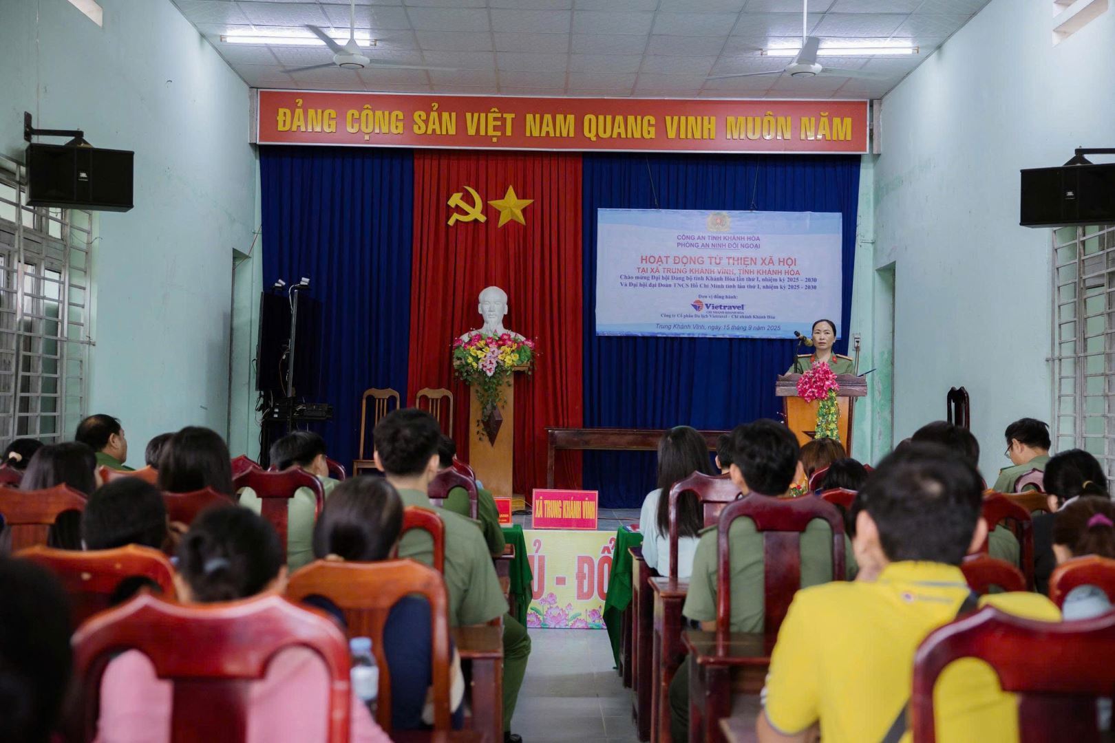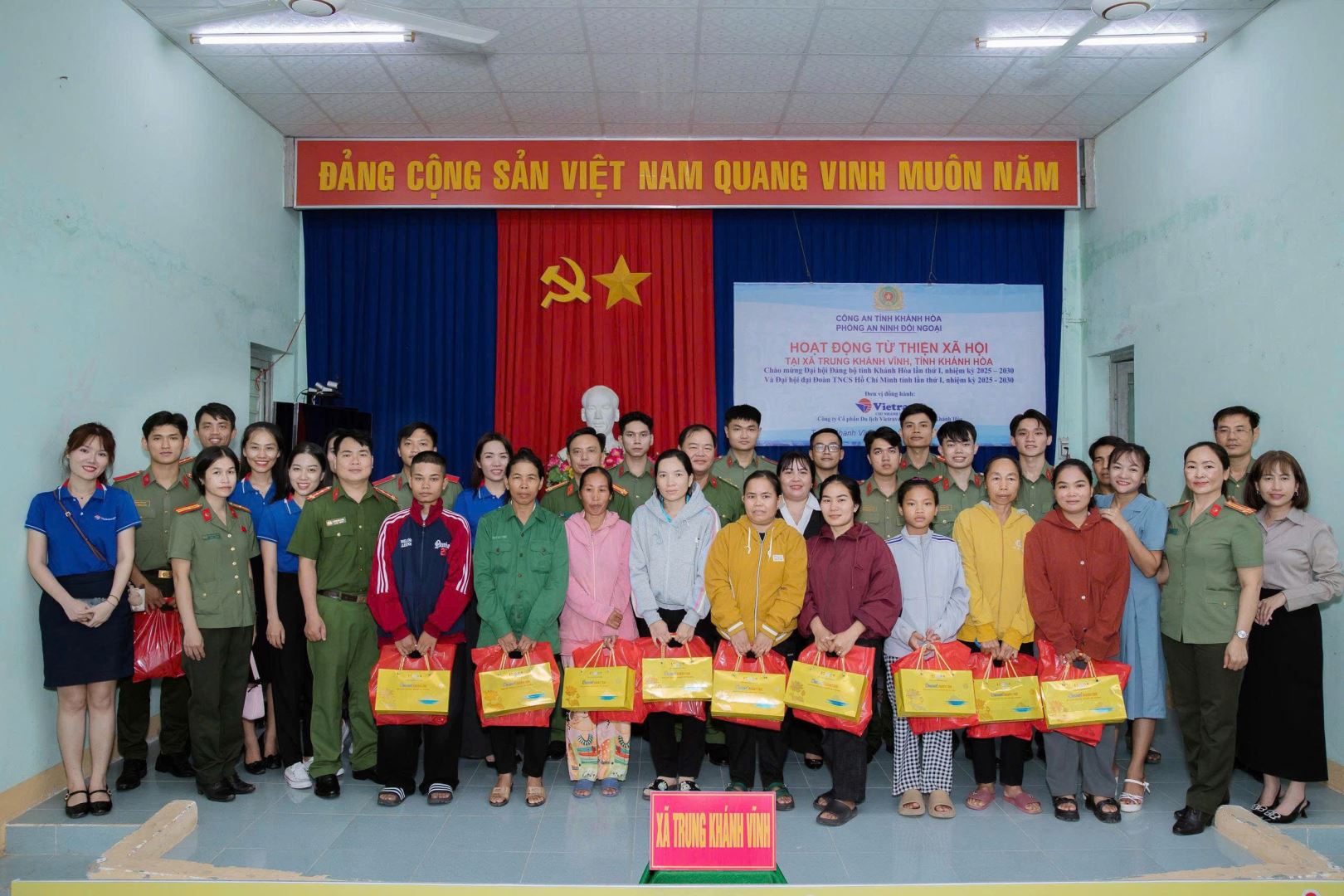 Thiết thực chào mừng Đại hội đại biểu Đảng bộ tỉnh Khánh Hoà lần thứ I, nhiệm kỳ 2025 - 2030, tiến tới Đại hội đại biểu toàn quốc lần thứ XIV của Đảng, chiều ngày 15/9/2025, đại diện Đảng uỷ, Lãnh đạo và cán bộ, chiến sĩ Phòng An ninh đối ngoại phối hợp với Công ty Cổ phần du lịch Viettravel - chi nhánh Khánh Hoà trao tặng 50 phần quà nhu yếu phẩm thiết yếu (mỗi suất trị giá 500.000 đồng) cho các hộ gia đình có hoàn cảnh khó khăn và 10 suất học bổng (mỗi suất trị giá 500.000 đồng) cho các em học sinh nghèo, học giỏi tại địa bàn xã Trung Khánh Vĩnh, tỉnh Khánh Hoà.