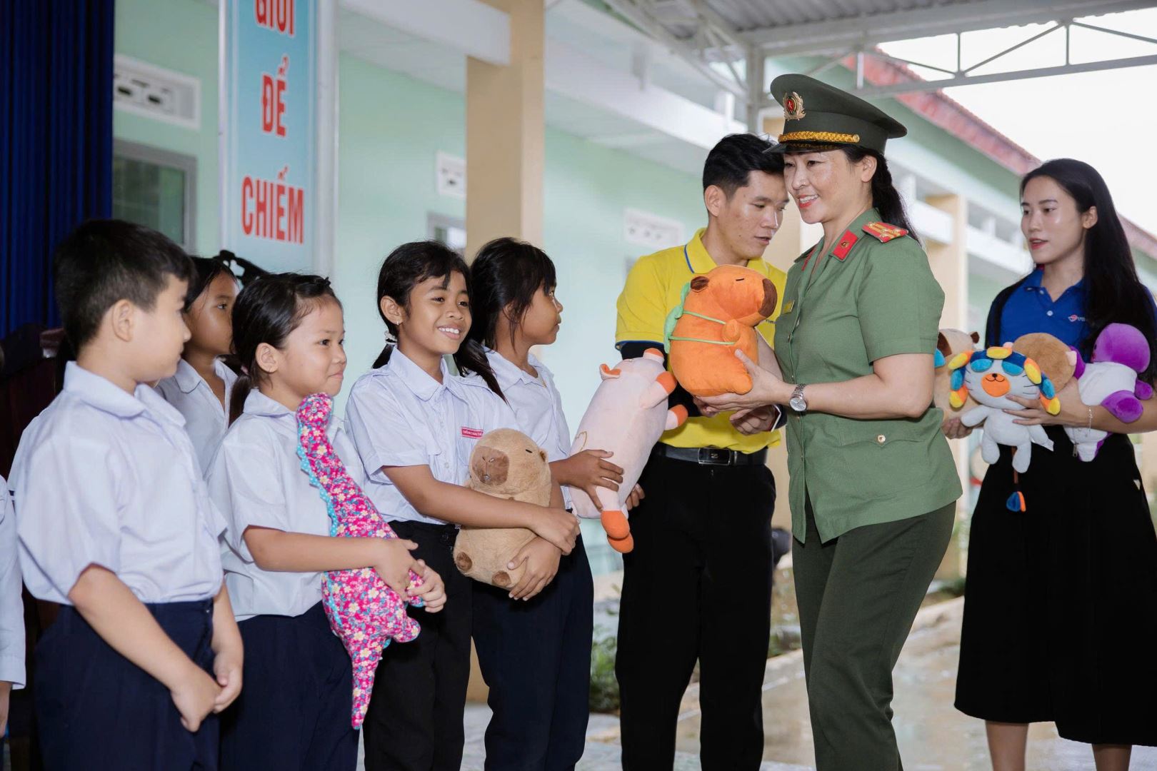 Bên cạnh đó, đại diện Phòng An ninh đối ngoại còn tổ chức bàn giao Công trình thanh niên Góc thắp sáng ước mơ (trong đó có một số đồ dùng học tập, quần áo, gấu bông, lồng đèn, mũ) cho các em học sinh Trường Tiểu học Khánh Hiệp và Trường Mầm non Khánh Hiệp, trị giá 15.000.000 đồng.