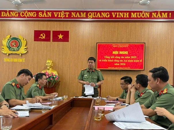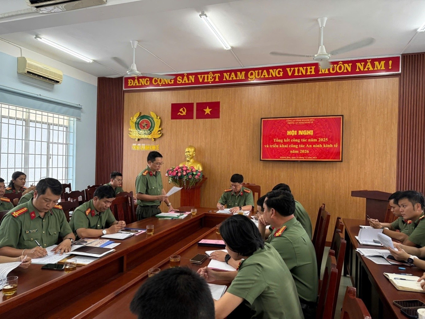 Chiều ngày 23/12/2025, Phòng An ninh kinh tế, Công an tỉnh Khánh Hòa tổ chức Hội nghị tổng kết công tác năm 2025 và triển khai chương trình công tác năm 2026. Dự và chỉ đạo Hội nghị có đồng chí Nguyễn Đình Thuận Hải - Ủy viên Ban Thường vụ Đảng ủy, Phó Giám đốc Công an tỉnh, cùng đại diện lãnh đạo Phòng Tham mưu và Cơ quan Ủy ban Kiểm tra Đảng ủy Công an tỉnh.