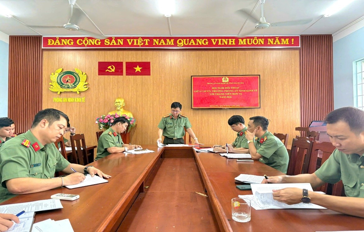 Ngày 03/3/2026, Phòng An ninh kinh tế tổ chức Hội nghị đối thoại giữa cấp ủy, lãnh đạo Phòng với đoàn viên, thanh niên trong đơn vị. Đồng chí Thướng tá Nguyễn Xuân Vương - Bí thư Đảng ủy, Trưởng phòng chủ trì hội nghị; tham dự có các đồng chí Phó Trưởng phòng, đại diện chỉ huy các Đội, Ban Chấp hành Chi đoàn và toàn thể đoàn viên, thanh niên trong đơn vị.