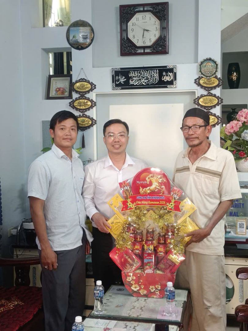 Nhân dịp chuẩn bị đón Tết cổ truyền Bính Ngọ, Tết Ramưwan và tháng lễ Ramadan năm 2026, từ ngày 04 - 05/02/2026, được sự ủy quyền của Lãnh đạo Công an tỉnh, Lãnh đạo Phòng An ninh nội địa tổ chức thăm, tặng quà và gửi lời chúc mừng của Đảng ủy, Lãnh đạo Công an tỉnh đến các chức sắc, trí thức, người có uy tín theo Hồi giáo trên địa bàn tỉnh.
