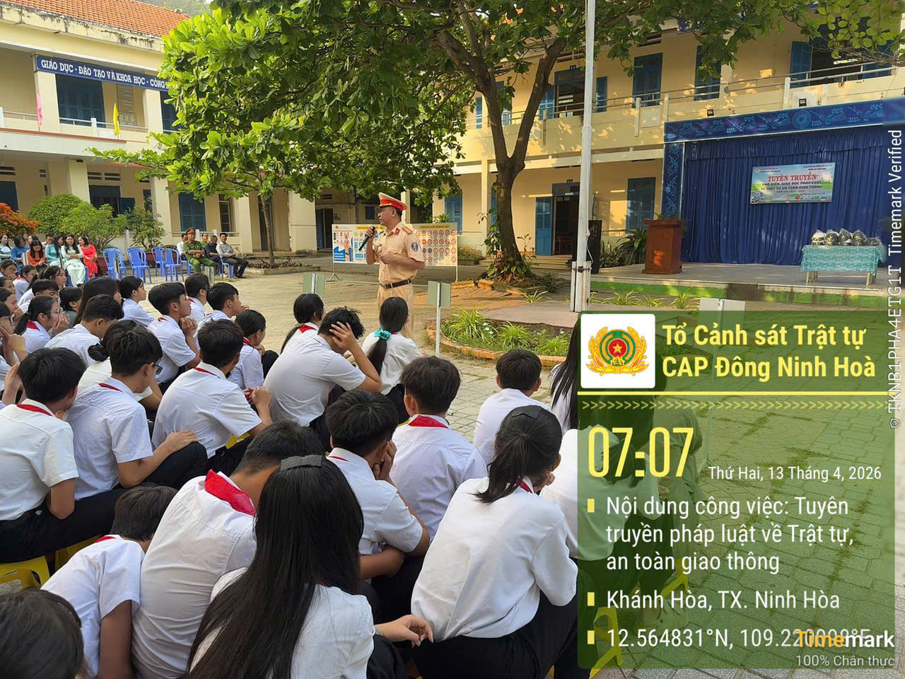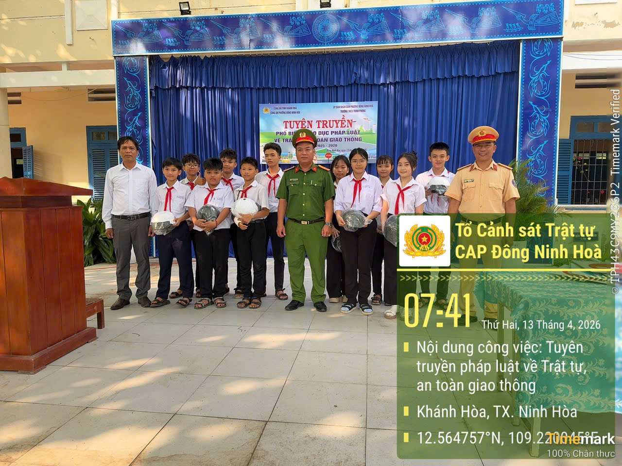 Nhằm góp phần nâng cao ý thức chấp hành pháp luật về trật tự an toàn giao thông trong lứa tuổi học sinh. Sáng 13/04/2026, Phòng Cảnh sát giao thông Công an tỉnh đã phối hợp với Công an Phường Đông Ninh Hòa, trường THCS Trịnh Phong tổ chức tuyên truyền tại trường với hơn 556 giáo viên, học sinh tham dự. Buổi tuyên truyền diễn ra sôi nổi, thiết thực, đi sâu vào những hành vi vi phạm gây mất trật tự an toàn giao thông liên quan đến lứa tuổi học sinh.