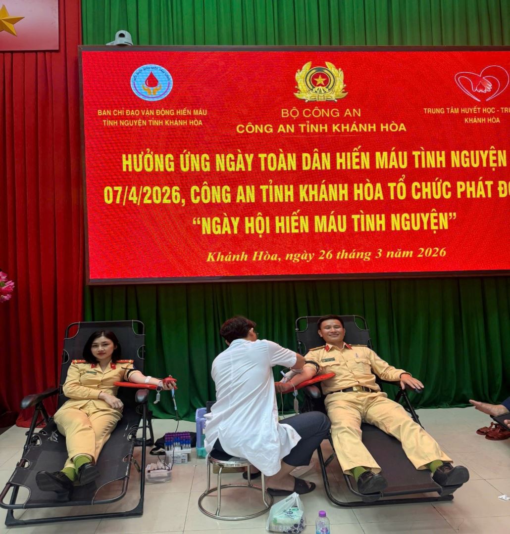 Hưởng ứng phong trào hiến máu tình nguyện, cán bộ, chiến sĩ Phòng Cảnh sát giao thông Công an tỉnh Khánh Hòa đã tích cực tham gia Ngày hội hiến máu tình nguyện do Công an tỉnh tổ chức.