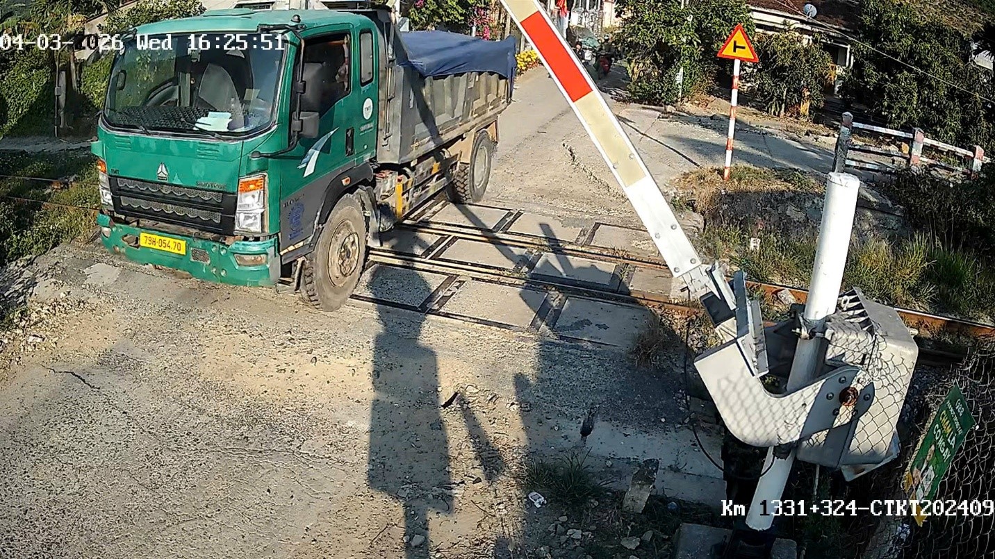 Qua theo dõi hình ảnh từ hệ thống camera giám sát, Phòng Cảnh sát giao thông đã phát hiện trường hợp xe ô tô có hành vi vượt qua đường ngang khi rào chắn đang dịch chuyển, vi phạm quy định về bảo đảm trật tự an toàn giao thông đường sắt.