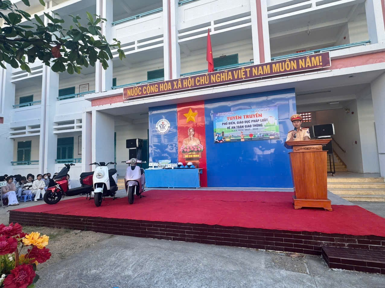 Sáng 23-3, Phòng Cảnh sát giao thông Công an tỉnh Khánh Hòa phối hợp với các đơn vị liên quan tổ chức tuyên truyền, phổ biến pháp luật về trật tự an toàn giao thông cho học sinh trên địa bàn tỉnh Khánh Hòa.
