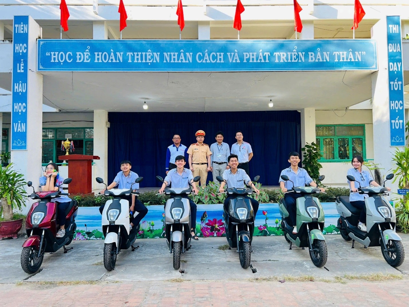Tại chương trình, đại diện Công ty TNHH Kim Song Mã đã trao tặng 06 chiếc xe máy điện cho nhà trường để phục vụ trong công tác giảng dạy cũng như hướng dẫn các em học sinh lái xe an toàn khi tham gia giao thông. Đây là hoạt động mang ý nghĩa thiết thực, thể hiện sự quan tâm, đồng hành của lực lượng Cảnh sát giao thông và doanh nghiệp đối với sự nghiệp giáo dục, đào tạo thế hệ trẻ.