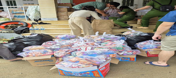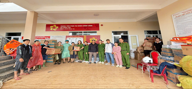 Chiều ngày 24/11/2025, Phòng CSKT cùng các mạnh thường quân đã tổ chức trao nhu yếu phẩm gồm: 300 tấm chăn, 348 tấm chiếu, 03 thùng thuốc tây, 20 thùng mì tôm, 20 thùng sữa, 06 thùng bánh, 04 thùng lương khô, 02 tấn gạo và 800 bộ quần áo đến người dân bị ảnh hưởng bởi mưa lũ tại xã Diên Điền.
