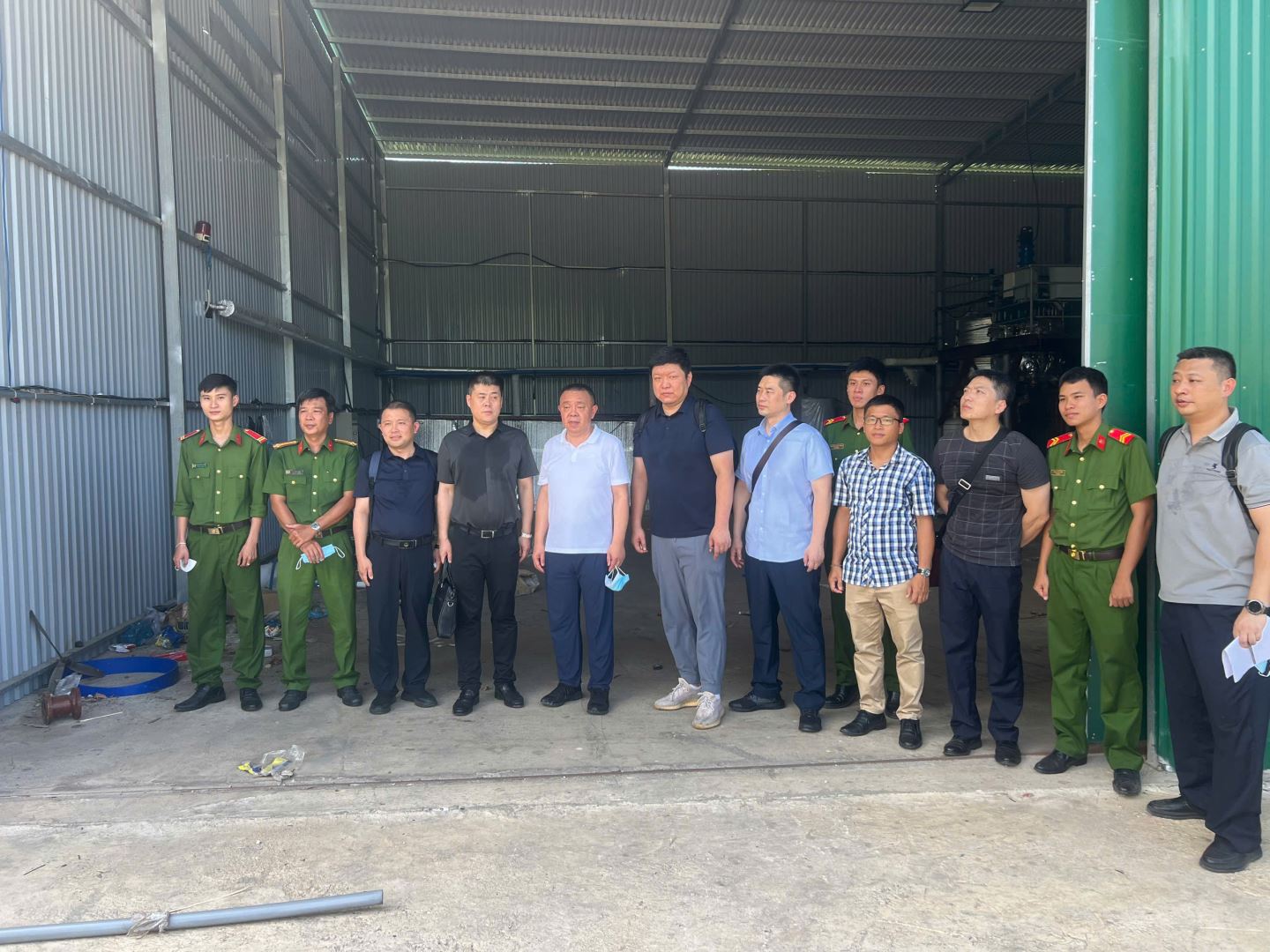 Đại diên Bộ Công an Trung Quốc đã trực tiếp khảo sát hiện trượng kho xưởng sản xuất