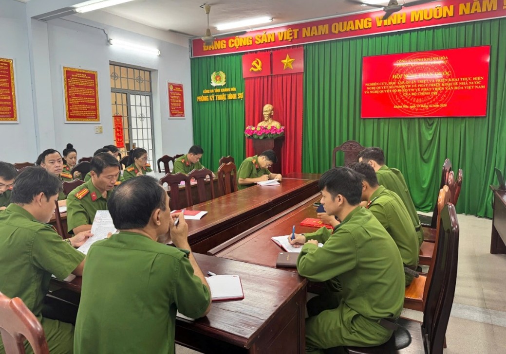 Ngay sau khi Đảng ủy Công an tỉnh ban hành các Kế hoạch tổ chức tuyên truyền, phổ biến, quán triệt, học tập Nghị quyết Đại hội đại biểu toàn quốc lần thứ XIV của Đảng; Nghị quyết Đại hội Đảng bộ tỉnh Khánh Hòa lần thứ I và Nghị quyết Đại hội đại biểu Đảng bộ Công an tỉnh lần thứ I, nhiệm kỳ 2025 – 2030 và Nghị quyết số: 79-NQ/TW ngày 06/01/2026 của Bộ Chính trị về phát triển kinh tế nhà nước; Nghị quyết số 80-NQ/TW ngày 07/01/2026 của Bộ Chính trị về phát triển văn hóa Việt Nam. Đảng ủy phòng Kỹ thuật hình sự đã khẩn trương xây dựng các kế hoạch triển khai thực hiện việc tuyên truyền, phổ biến, quán triệt, học tập nghị quyết của các cấp ở Đảng bộ và tổ chức thực hiện nghiêm túc, đạt mục đích, yêu cầu và nội dung đề ra.