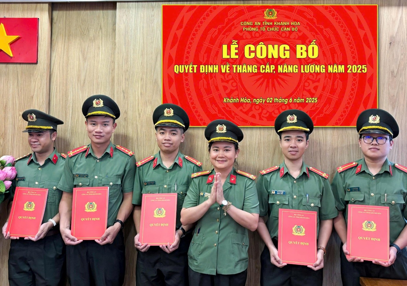 Năm 2025, Phòng Tổ chức cán bộ có 18 đồng chí được thăng cấp, nâng lương. Trong đó, 01 đồng chí thuộc thẩm quyền quyết định của Bộ trưởng Bộ Công an và 17 đồng chí thuộc thẩm quyền của Giám đốc Công an tỉnh.