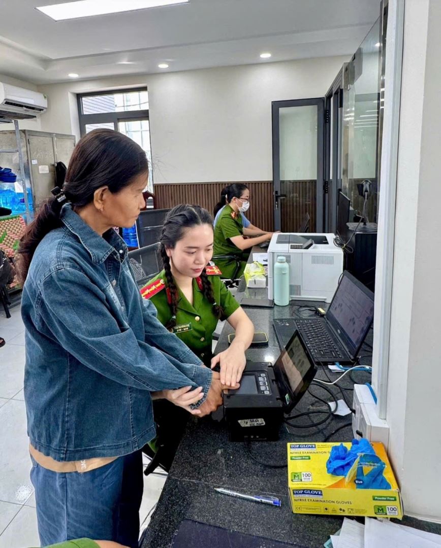 Nữ cán bộ thực hiện thu nhận sinh trắc