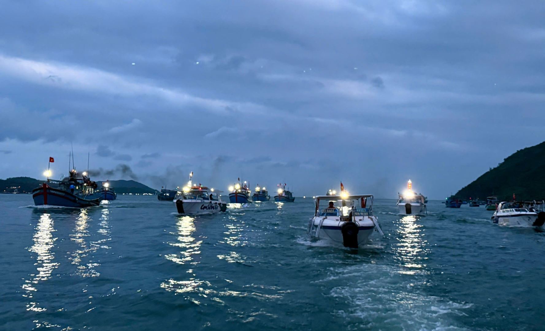 Ngay sau lễ ra mắt, các thành viên “Đội xung kích vì biển đảo bình yên” trong nghiệp đoàn nghề cá phường Bắc Nha Trang đã ra quân diễu hành, biểu dương lực lượng tại khu vực Cảng cá Hòn Rớ (phường Nam Nha Trang).