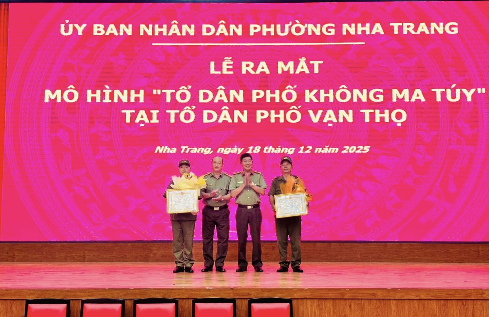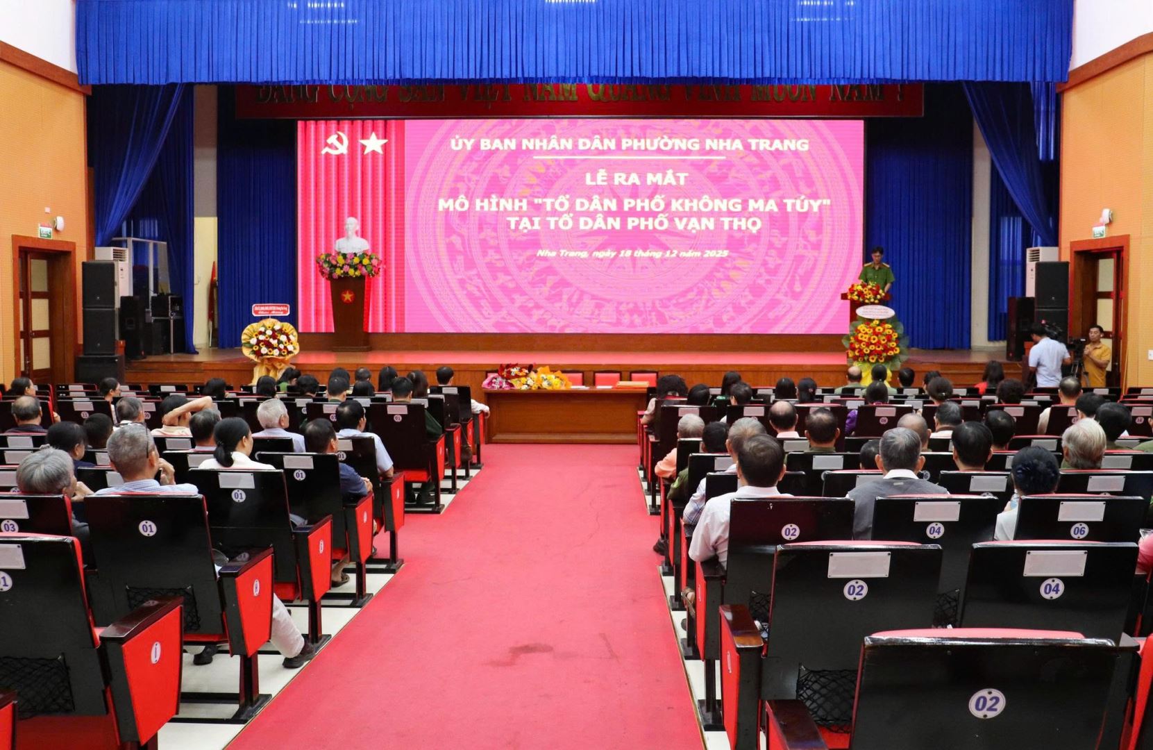 Thực hiện Đề án “Xây dựng xã, phường, đặc khu không ma túy” giai đoạn 2025-2030 của UBND tỉnh Khánh Hòa, sáng 18/12, UBND phường Nha Trang tổ chức Lễ ra mắt mô hình “Tổ dân phố không ma túy” tại Tổ dân phố Vạn Thọ. Ông Trần Xuân Tây, Chủ tịch UBND phường Nha Trang chủ trì buổi lễ. Tham dự lễ còn có đại diện lãnh đạo các phòng nghiệp vụ của Công an tỉnh; cùng đông đảo bà con nhân dân, lực lượng an ninh trật tự cơ sở trên địa bàn phường.