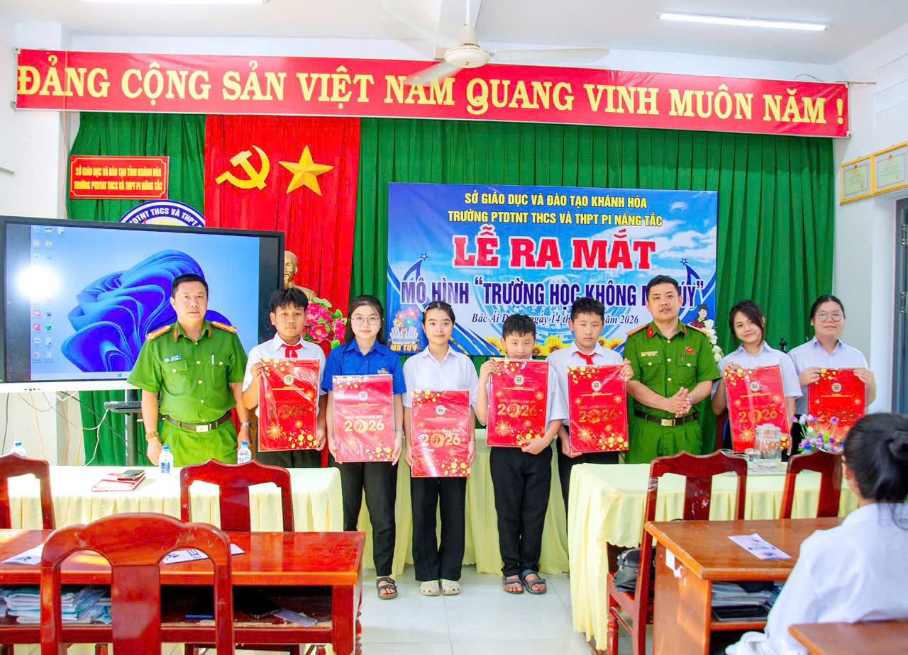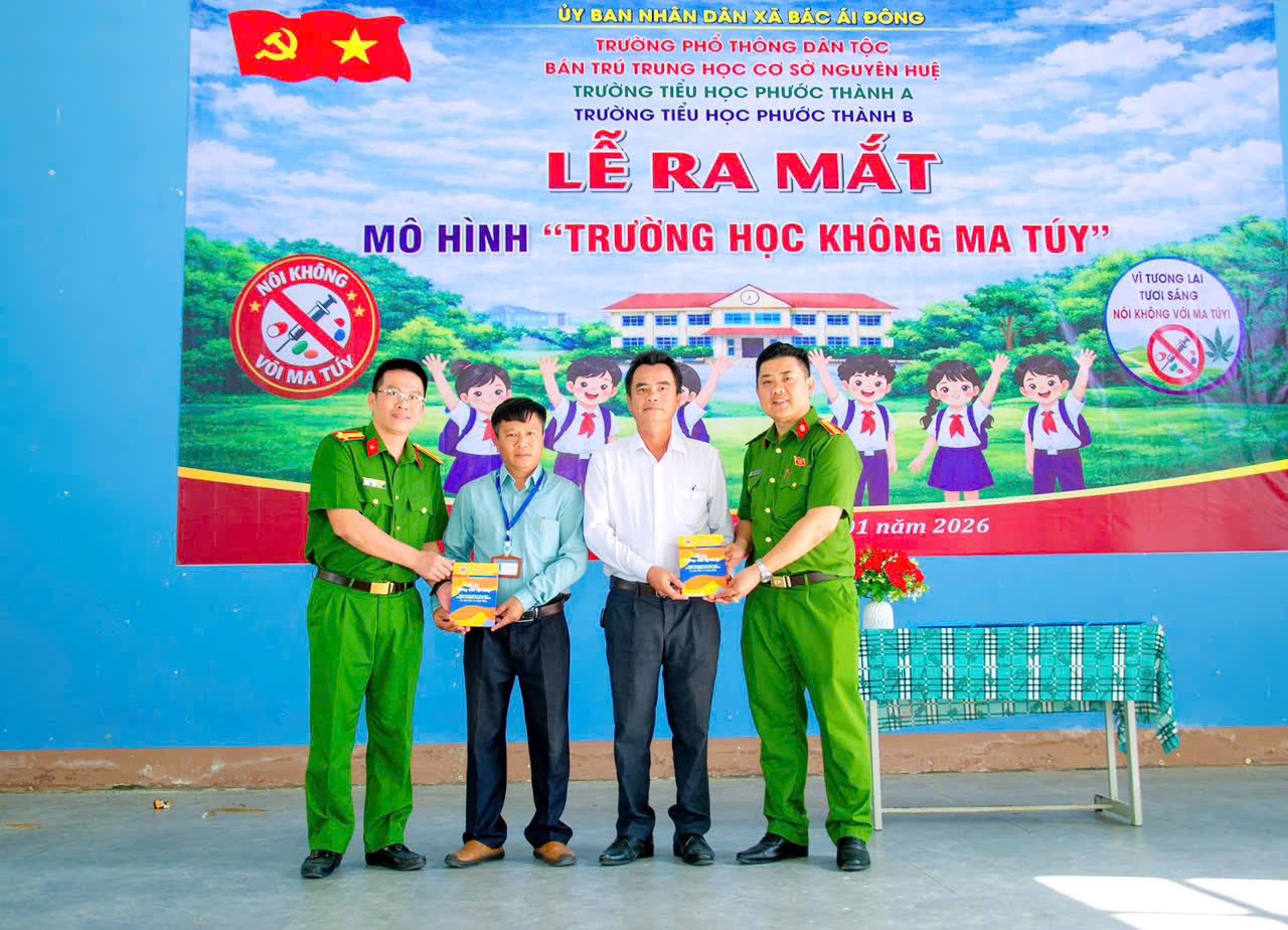 Ngày 14,15/01/2026, Phòng Cảnh sát điều tra tội phạm về ma tuý đã phối hợp với Công an xã Bác Ái Đông ra mắt mô hình “ Trường học không ma tuý” và tuyên truyền phòng chống tác hại thuốc lá điện tử và ma tuý trong học đường tại Trường Phổ thông dân tộc nội trú THCS và THPT Pi Năng Tắc và trường THCS Nguyễn Huệ.
