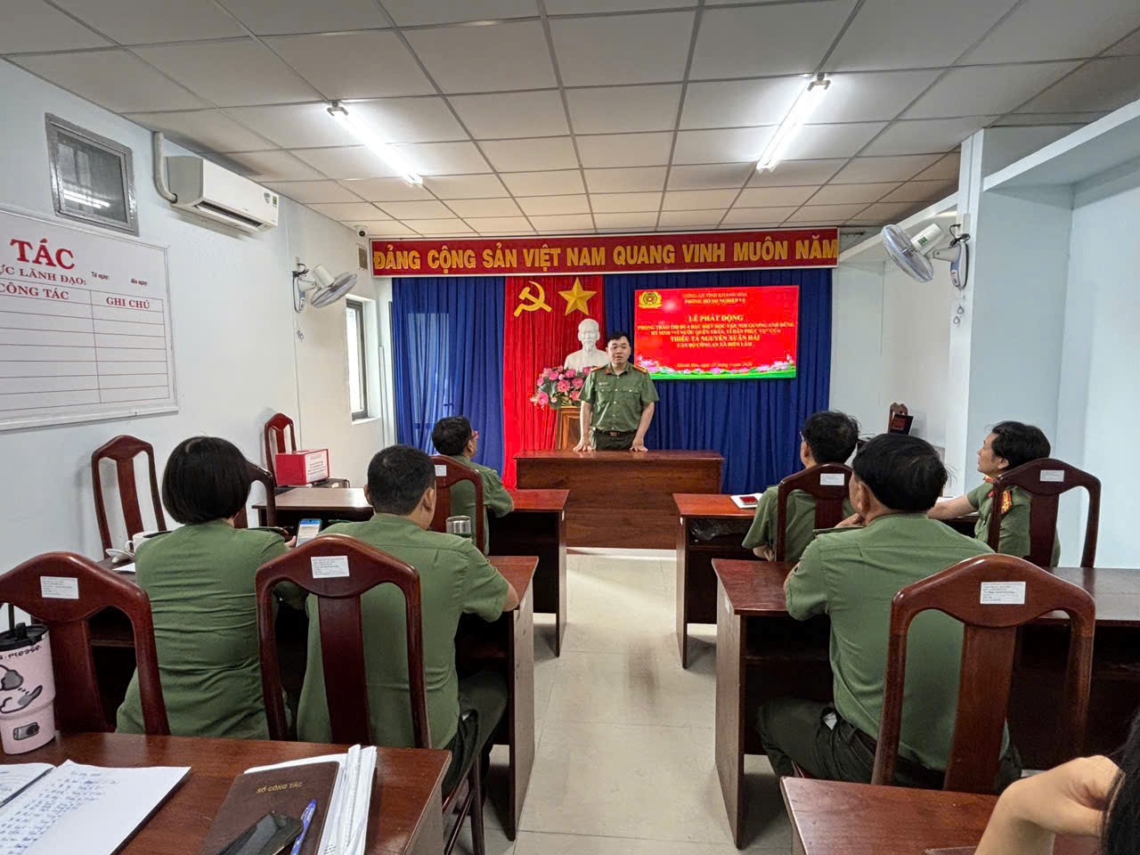 Đồng chí Thượng tá Lê Văn Bảo – Trưởng phòng Hồ sơ nghiệp vụ chỉ đạo tại buổi Lễ phát động