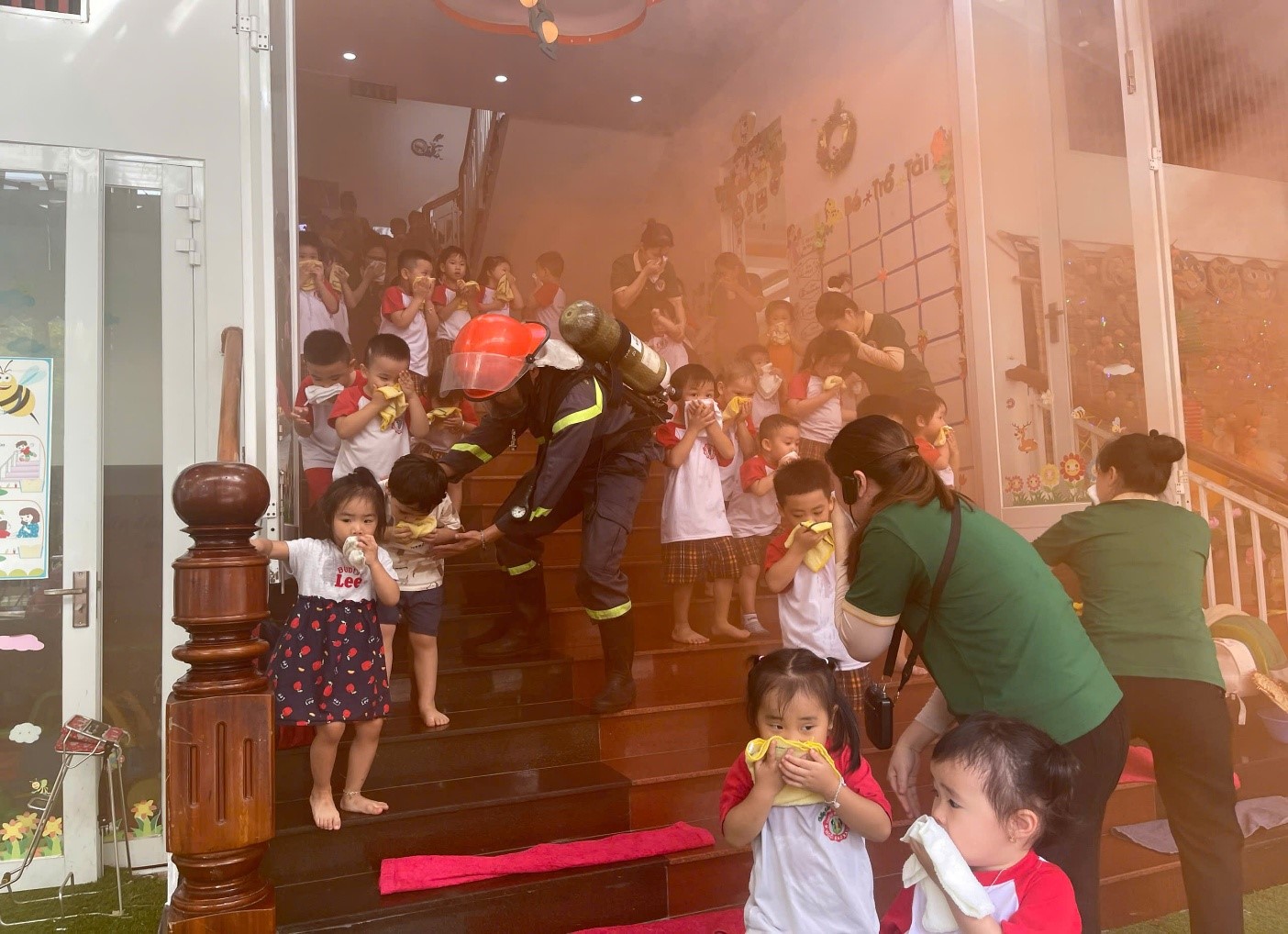 Hình ảnh giả định tình huống hướng dẫn thoát nạn khi có sự cố cháy, nổ xảy ra