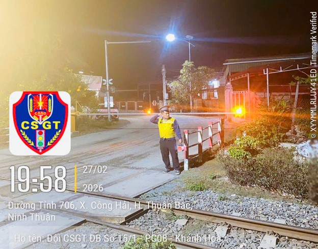 Thực hiện Kế hoạch bảo đảm trật tự, an toàn giao thông đường sắt, Phòng Cảnh sát giao thông Công an tỉnh Khánh Hòa đã tổ chức kiểm tra thực tế tại các đường ngang dân sinh giao cắt với tuyến đường sắt trên địa bàn tỉnh, đồng thời tiến hành kiểm tra nồng độ cồn đối với nhân viên làm nhiệm vụ gác chắn.