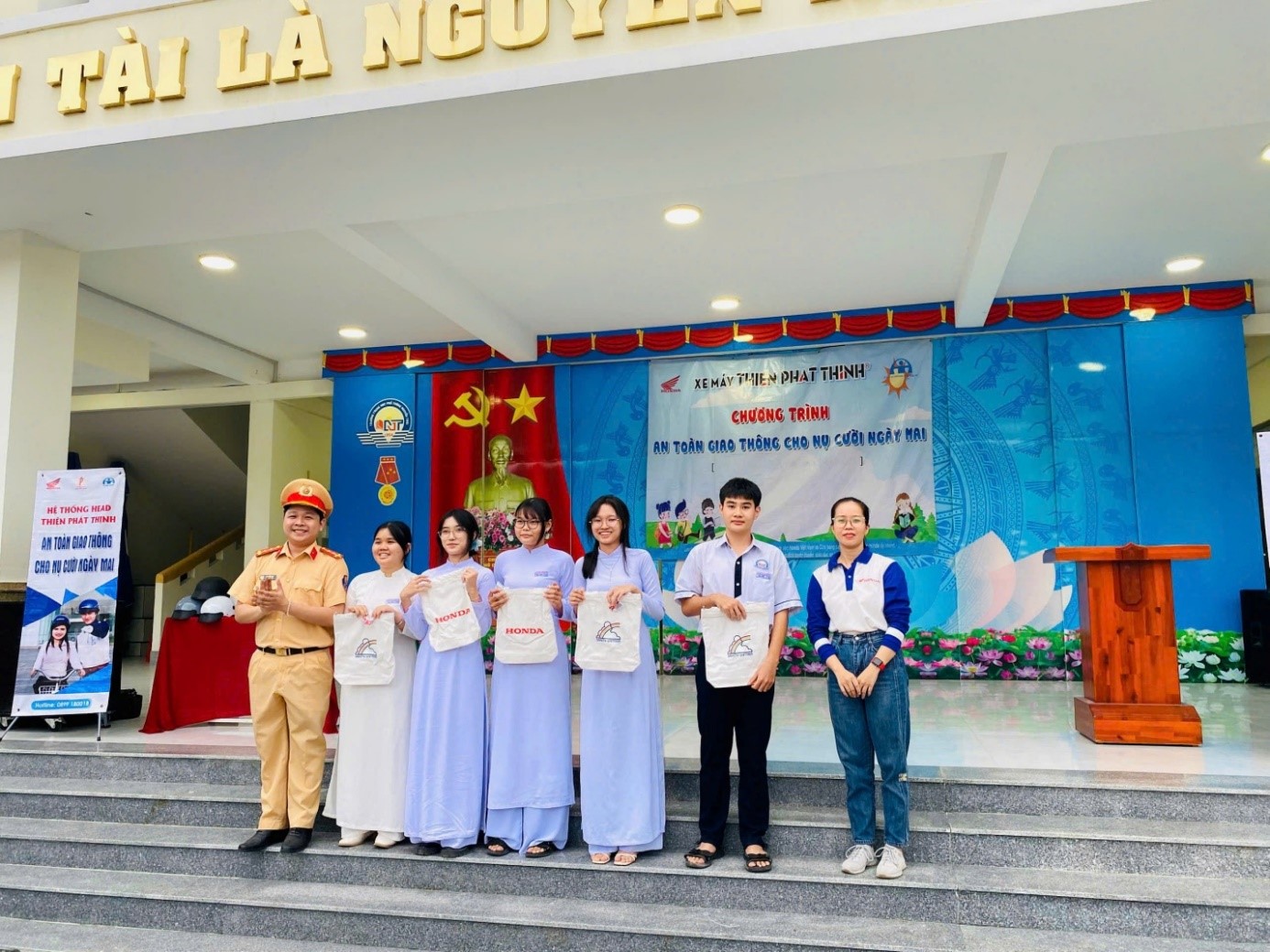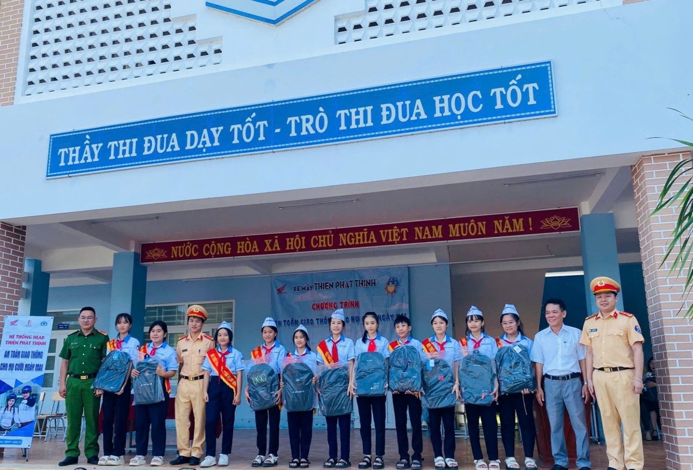 “An toàn giao thông là hạnh phúc của mọi gia đình. Hãy chấp hành luật, đội mũ bảo hiểm đúng cách, không phóng nhanh vượt ẩu, để mỗi ngày đến trường là một ngày bình an.”