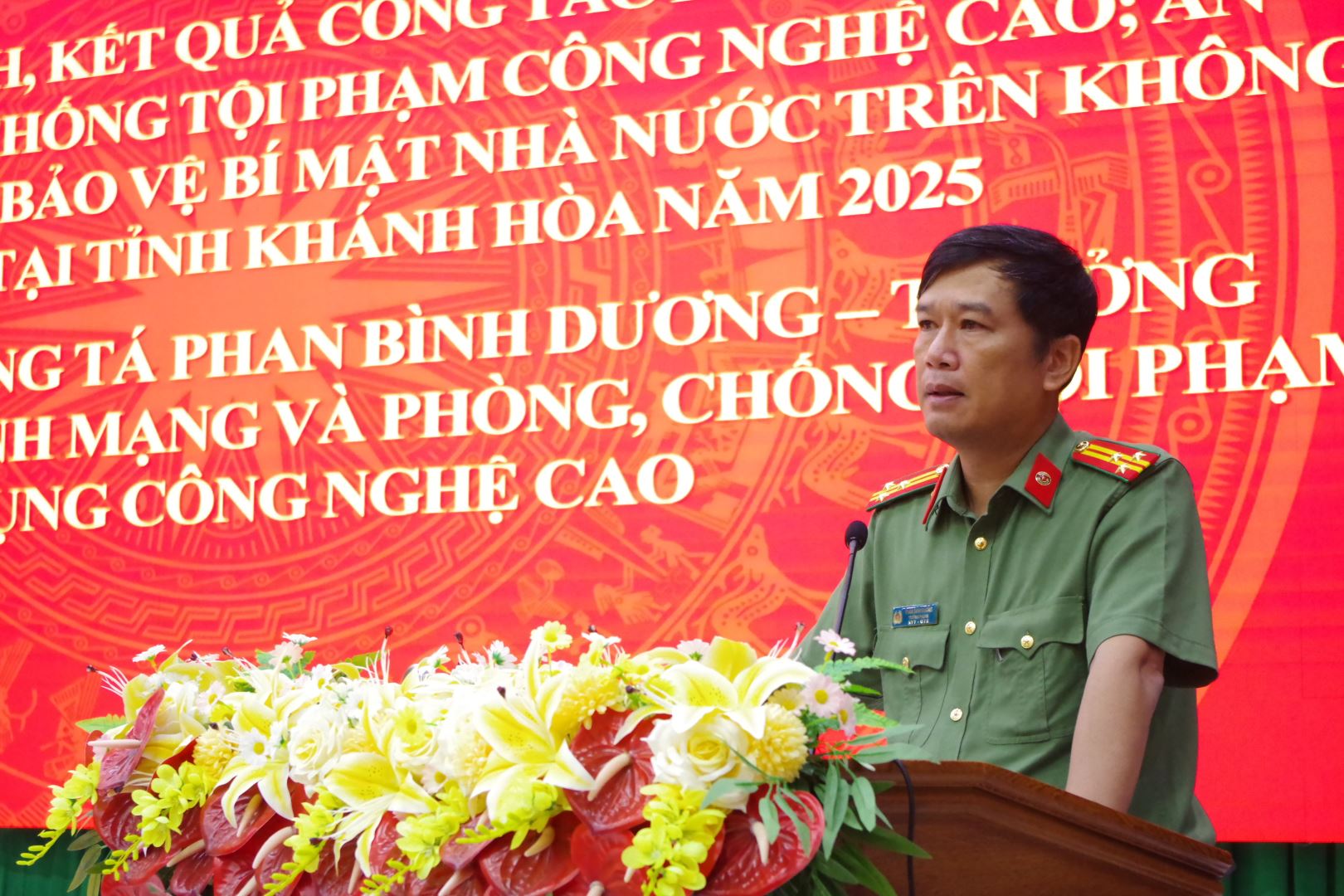 Thượng tá Phan Bình Dương - Trưởng phòng, Phòng An ninh mạng và phòng, chống tội phạm sử dụng Công nghệ cao báo cáo một số chuyên đề tại Hội nghị