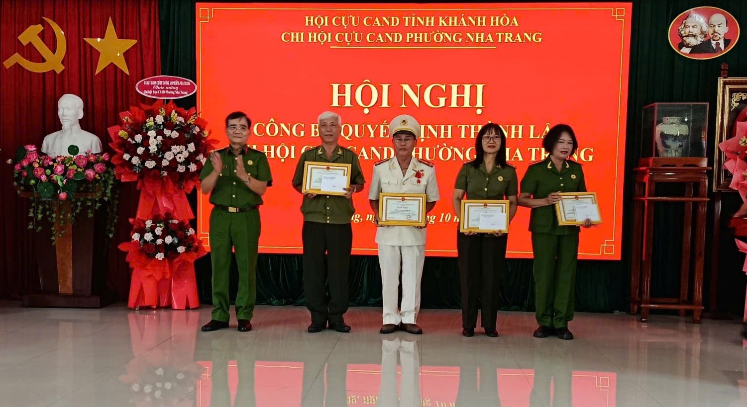 Đại tá Nguyễn Đức Quỳnh, Uỷ viên Ban Thường vụ, Phó Chủ tịch Thường trực Hội Cựu CAND tỉnh Khánh Hòa dự và trao Quyết định thành lập Chi hội Cựu CAND phường Nha Trang và chỉ định Ban chấp hành Chi hội gồm 04 đồng chí; Thượng tá Nguyễn Hồng Kỳ được chỉ định làm Chi hội trưởng; các đồng chí Đại tá Lương Thiết, Thượng tá Mai Thị Ngọc Anh và Thượng tá Ngô Thị Vân Khánh làm Chi hội phó.