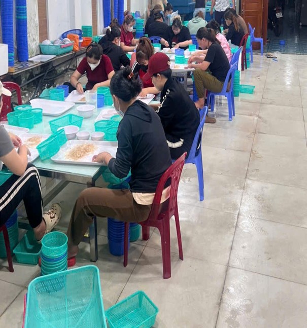Tại thời điểm kiểm tra, Tổ công tác phát hiện tại cơ sở có 05 hồ composite đang chứa 150.250 con tôm hùm giống; 10 nhân công đang kiểm đếm, phân loại tôm hùm giống và 01 người đang thực hiện giao dịch mua tôm hùm giống.