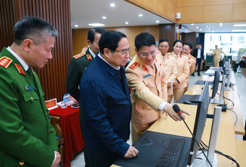 Thủ tướng Chính phủ Phạm Minh Chính và các đại biểu kiểm tra sơ đồ số đảm bảo TTATGT.