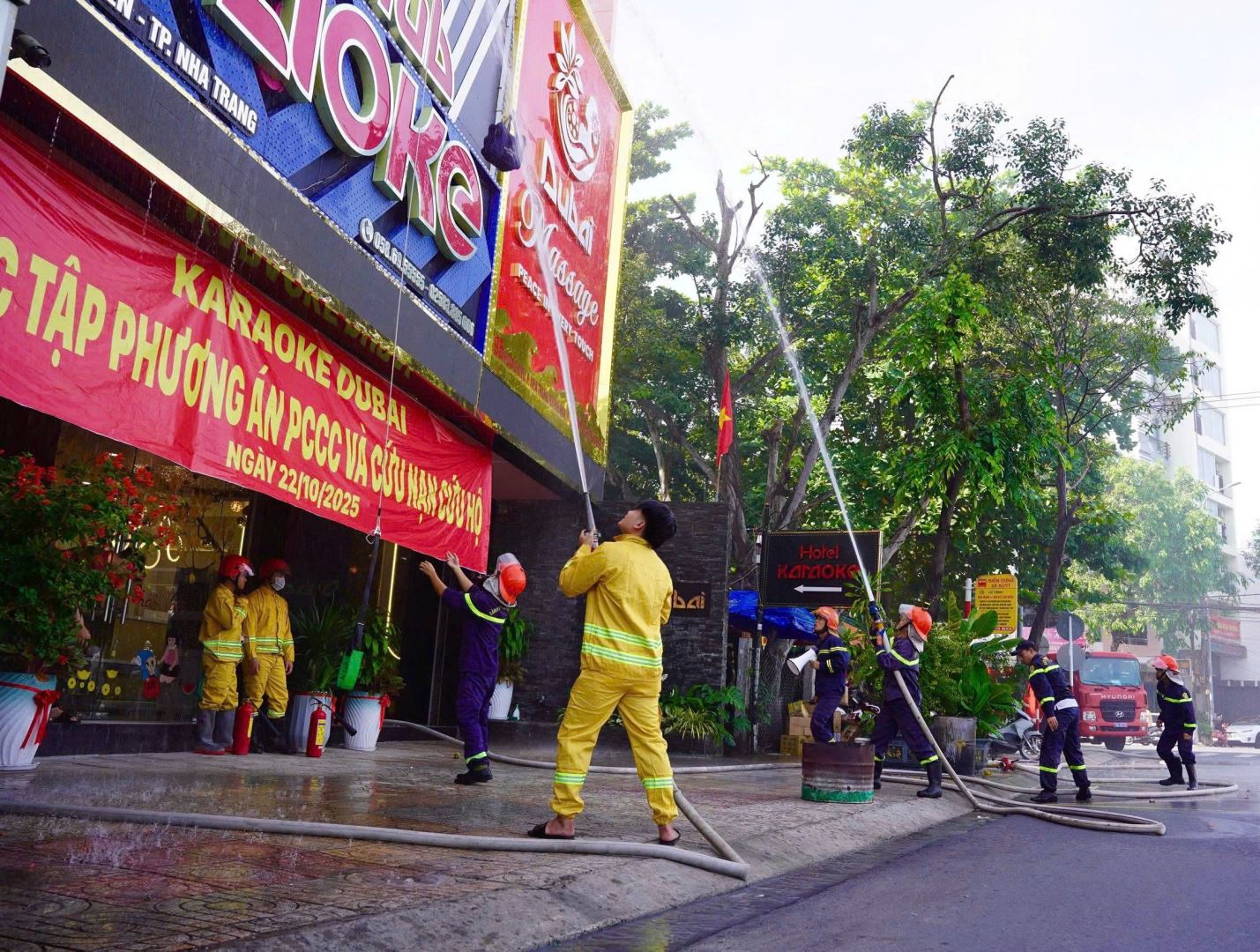 Sáng 22/10, Đội Cảnh sát phòng cháy chữa cháy (PCCC) và cứu nạn, cứu hộ (CNCH) Khu vực 1 phối hợp với lực lượng PCCC cơ sở và các đơn vị liên quan tổ chức thực tập phương án chữa cháy tại Karaoke Dubai, phường Nha Trang, Khánh Hoà.