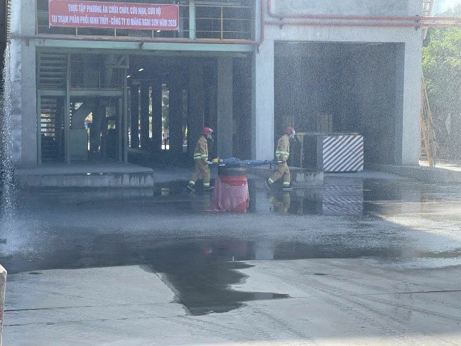 Buổi thực tập được triển khai với tình huống giả định xảy ra sự cố hệ thống điện gây cháy tại khu vực đóng bao xi măng. Do đặc thù khu vực chứa nhiều bao bì dễ cháy nên đám cháy nhanh chóng lan rộng, tỏa nhiều khói độc và nhiệt độ cao, đe dọa tính mạng của công nhân.