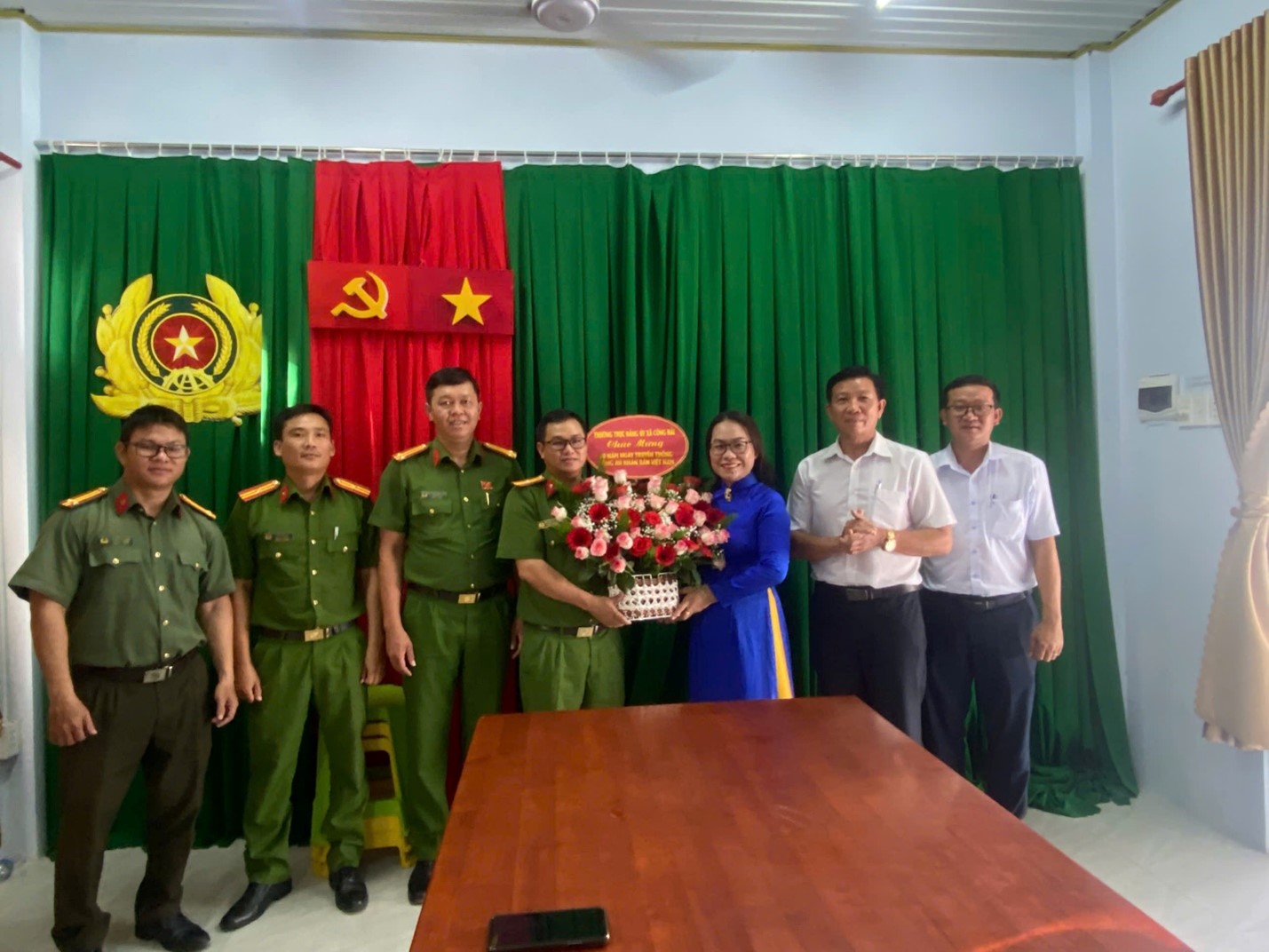 Thường trực Đảng ủy và Ủy ban MTTQ Việt Nam xã Công Hải đến thăm, chúc mừng Công an xã nhân kỷ niệm 80 năm Ngày thành lập CAND