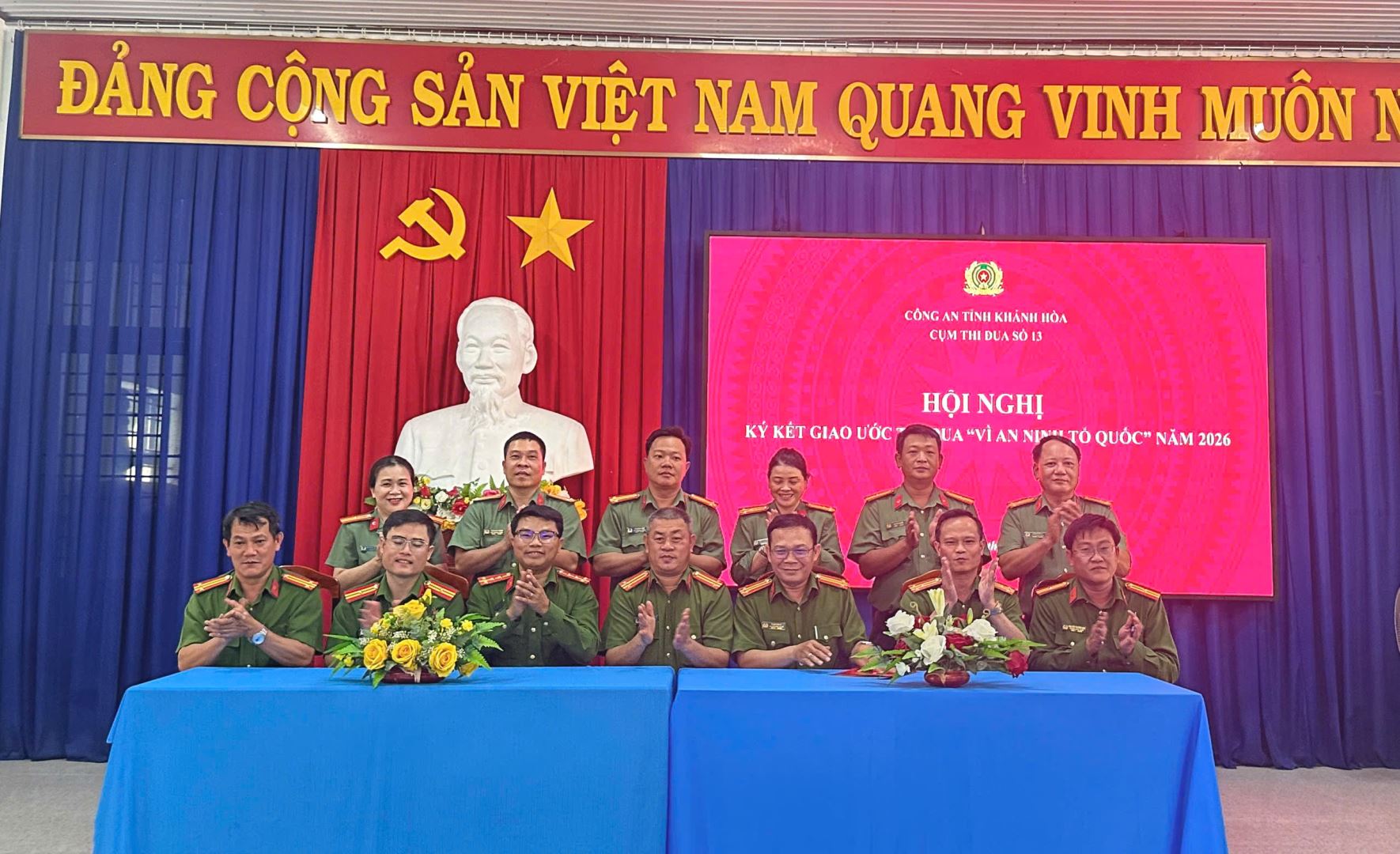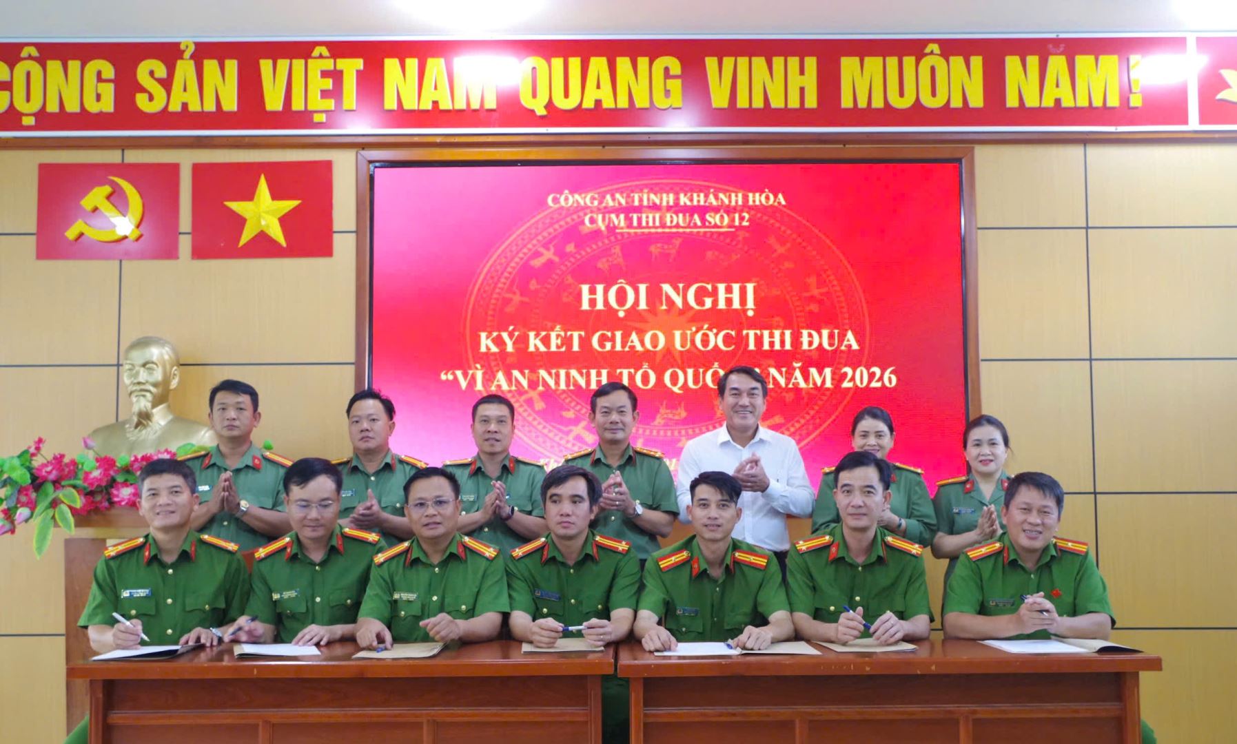 Với khẩu hiệu hành động: “Theo lời Bác dạy, nâng cao tri thức - Chính quy, hiện đại - Vì Đảng, vì dân”, thể hiện quyết tâm xây dựng lực lượng Công an cơ sở vững mạnh, đáp ứng yêu cầu nhiệm vụ trong tình hình mới, từ ngày 31/3 đến 03/4/2026, các Cụm thi đua số 11, 12, 13 - Công an tỉnh Khánh Hòa đã tổ chức Hội nghị ký kết giao ước phong trào thi đua “Vì an ninh Tổ quốc” năm 2026 với sự tham dự của lãnh đạo Công an tỉnh và đại diện các đơn vị liên quan.