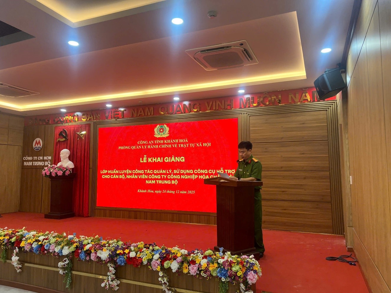 Do đó, Phòng Cảnh sát Quản lý hành chính về trật tự xã hội, Công an tỉnh Khánh Hòa đã tổ chức khóa đào tạo, huấn luyện về công tác quản lý và sử dụng công cụ hỗ trợ (CCHT) cho 80 học viên là cán bộ, nhân viên của các doanh nghiệp: Công ty TNHH Dịch vụ bảo vệ Nam Đô – Ninh Thuận; Công ty TNHH Dịch vụ bảo vệ Long Sơn Hải – Ninh Thuận; Công ty CP Dịch vụ bảo vệ Ninh Thuận và Công ty Công nghiệp Hóa chất mỏ Nam Trung Bộ.