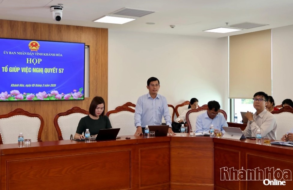 Chiều 5-3, đồng chí Nguyễn Thanh Hà - Phó Chủ tịch UBND tỉnh Khánh Hòa chủ trì cuộc họp Tổ giúp việc Nghị quyết số 57 của Bộ Chính trị về đột phá phát triển khoa học, công nghệ, đổi mới sáng tạo và chuyển đổi số quốc gia (phiên họp thứ 7).