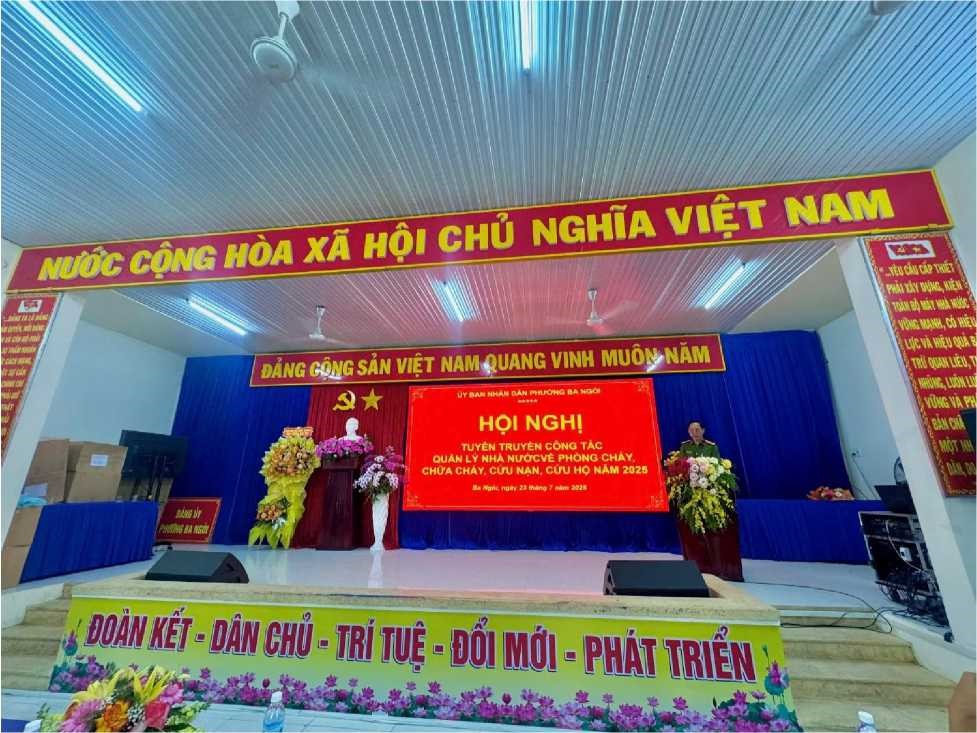Ngày 23/7, Phòng Cảnh sát phòng cháy chữa, cháy và cứu nạn, cứu hộ (PCCC và CNCH), Công an tỉnh Khánh Hòa phối hợp với Ủy ban nhân dân phường Ba Ngòi và xã Nam Cam Ranh tổ chức Hội nghị tuyên truyền hướng dẫn triển khai Luật Phòng cháy, chữa cháy và cứu nạn, cứu hộ, các Nghị định Thông tư hướng dẫn thi hành; hướng dẫn nghiệp vụ công tác quản lý nhà nước về Phòng cháy, chữa cháy và cứu nạn, cứu hộ tại trụ sở UBND phường Ba Ngòi.