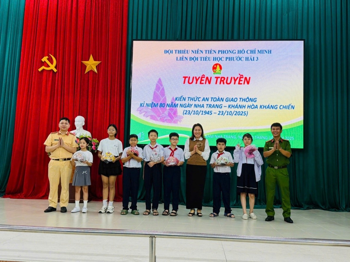 Trong ngày 20/10/2025, Phòng Cảnh sát giao thông Công an tỉnh Khánh Hoà đã phối hợp tổ chức tuyên truyền, phổ biến pháp luật về trật tự, an toàn giao thông cho cán bộ, giáo viên, nhân viên và học sinh cho Trường THCS Cao Bá Quát, Trường tiểu học Bình Quý, Trường tiểu học Phước Hải 3.