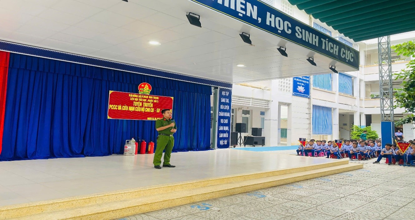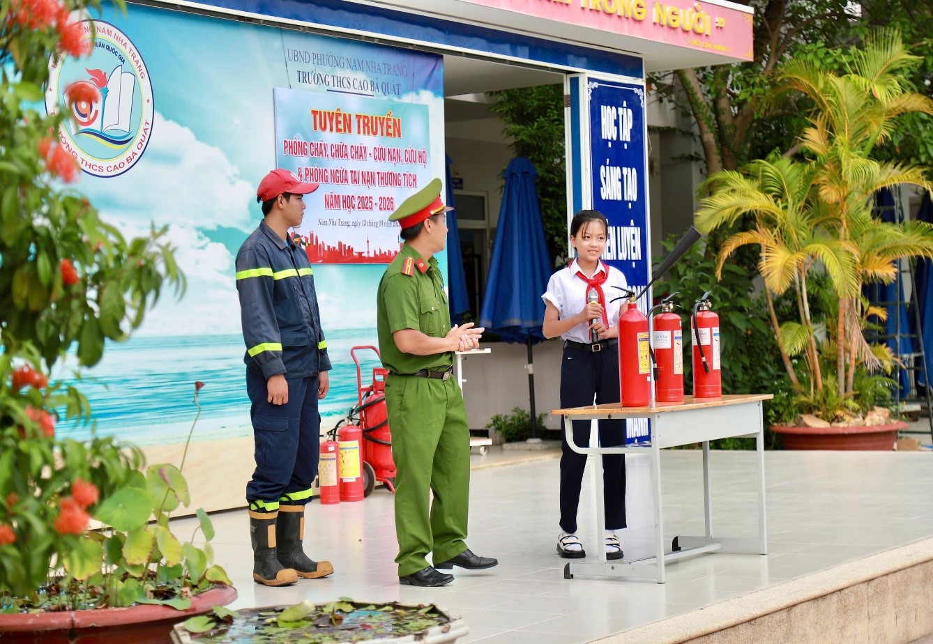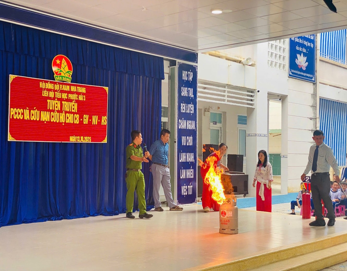 Nhằm nâng cao kiến thức, kỹ năng an toàn phòng cháy, chữa cháy và cứu nạn, cứu hộ cho học sinh, giáo viên, cán bộ, công nhân viên, ngày 13/10/2025, Đội CC&CNCH khu vực 1 – Phòng Cảnh Sát PCCC&CNCH đã tổ chức chương trình tuyên truyền kiến thức, kỹ năng an toàn về phòng cháy, chữa cháy và cứu nạn, cứu hộ cho hơn 2.000 học sinh, giáo viên, cán bộ, công nhân viên 02 trường học ( trường tiểu học Phước Hải 3, trường THCS Cao Bá Quát – phường Nam Nha Trang).