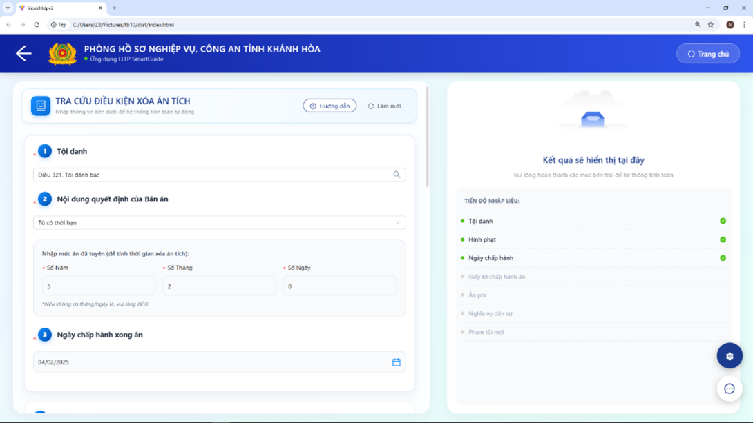 Chiều ngày 11/3/2026, sáng kiến “LLTP SmarGuide - Ứng dụng công nghệ thông tin hỗ trợ công dân trong việc thực hiện cấp Phiếu lý lịch tư pháp và xóa án tích theo mô hình hướng dẫn thông minh đa ngôn ngữ và ngôn ngữ ký hiệu” của đồng chí Thượng úy Nguyễn Bảo Phước - cán bộ Phòng Hồ sơ nghiệp vụ Công an tỉnh đã được Hội đồng xét, công nhận sáng kiến cải cách thủ tục hành chính cấp cơ sở của Công an tỉnh Khánh Hòa thống nhất đề nghị công nhận sáng kiến cấp cơ sở.