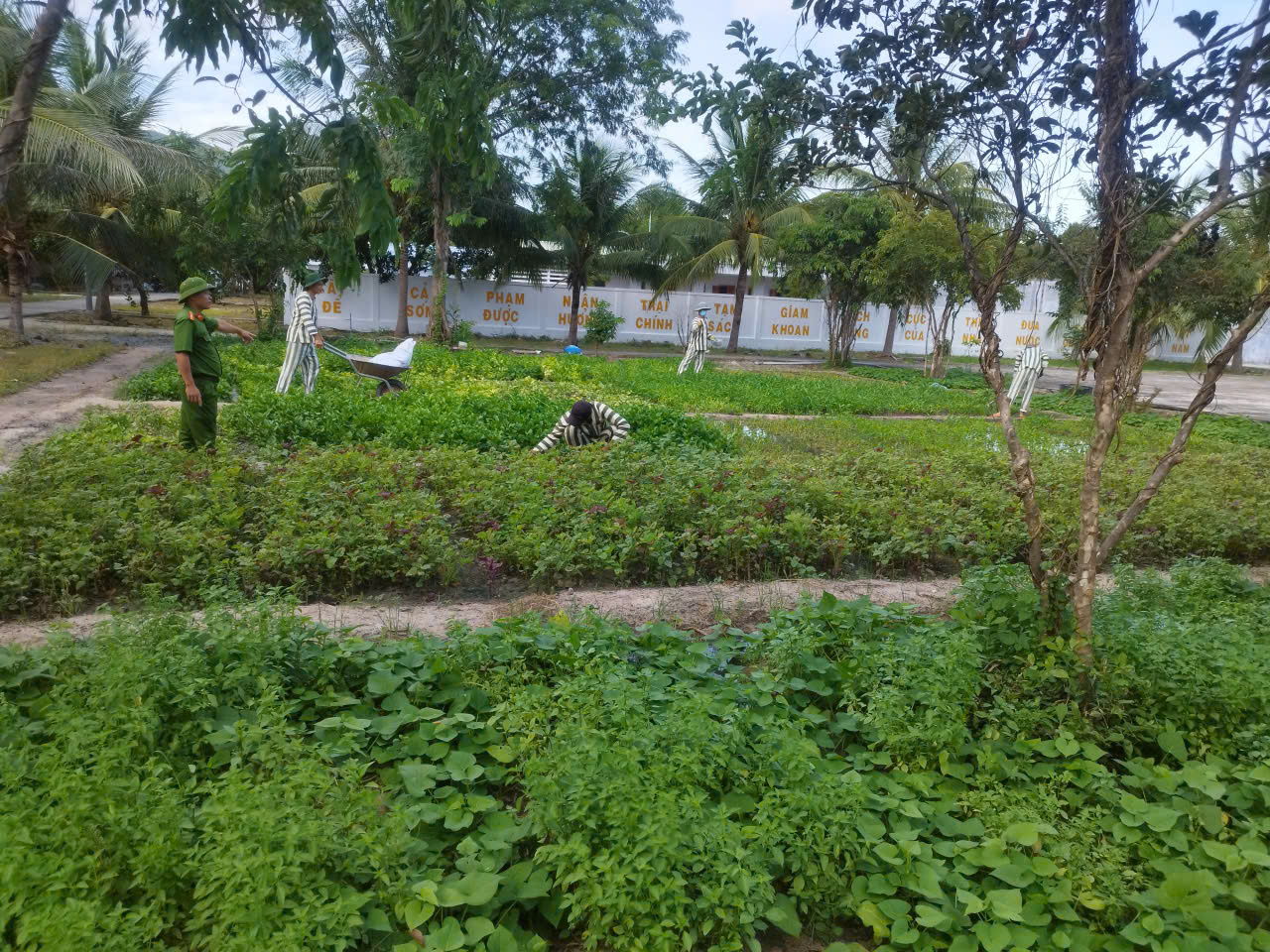 Phạm nhân tham gia lao động sản xuất tại khu trồng rau trong khu vực Trại tạm giam số 2