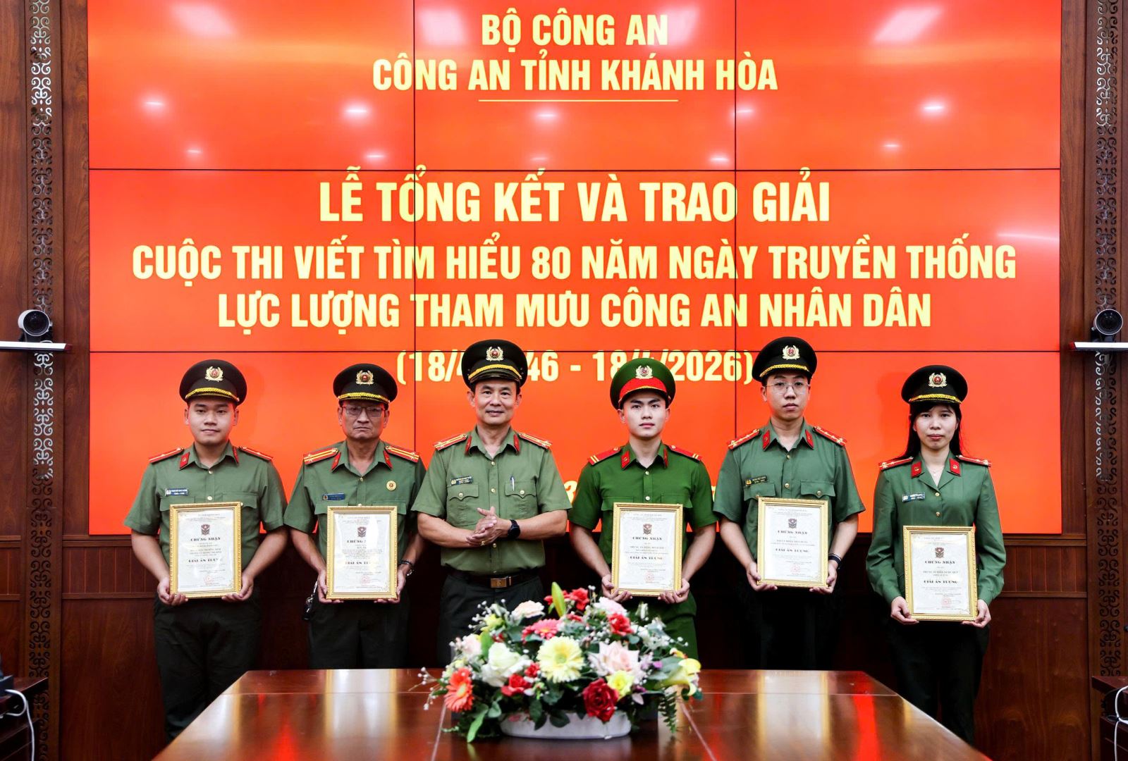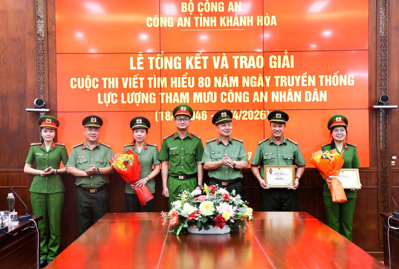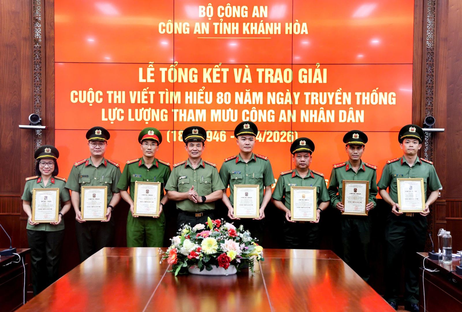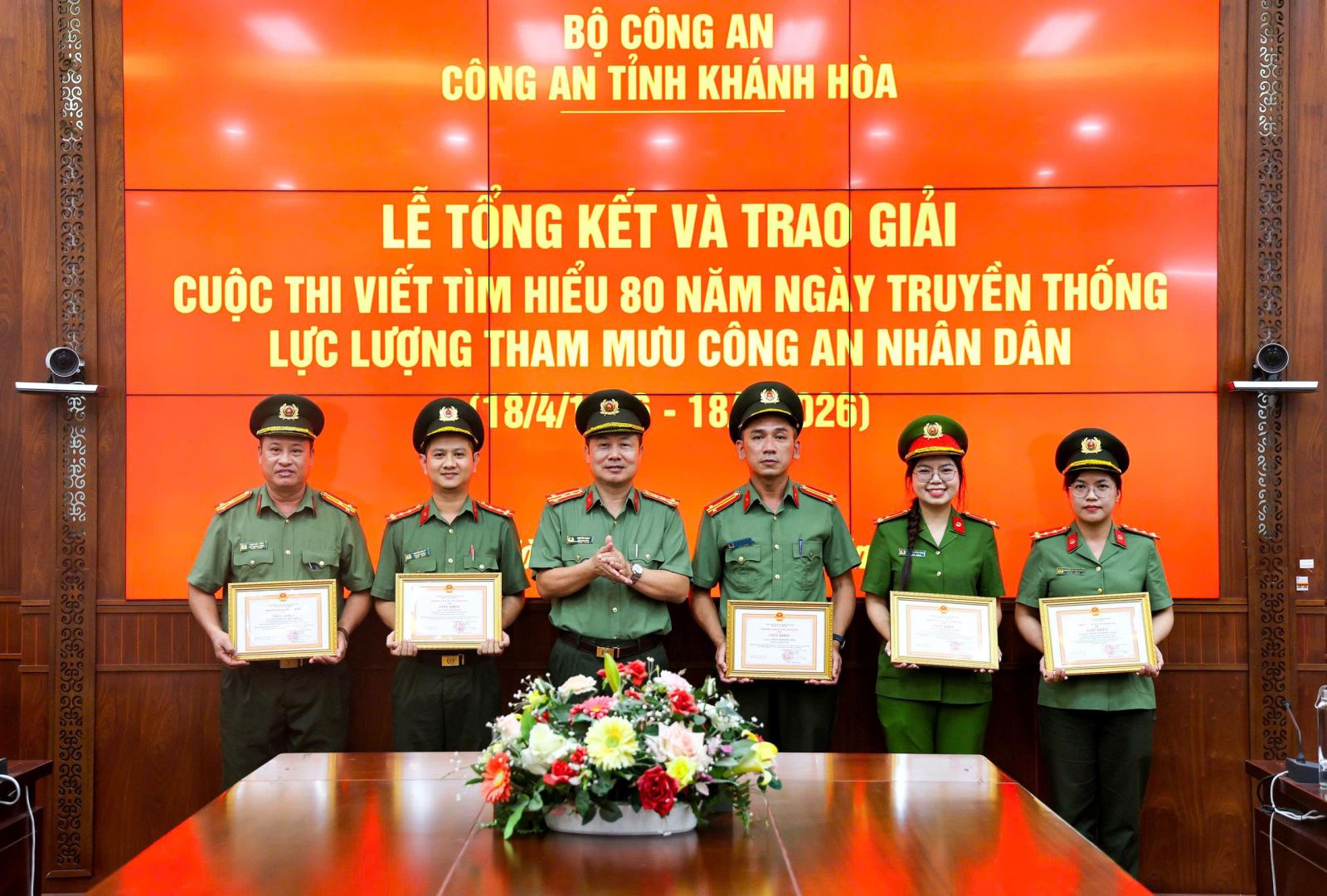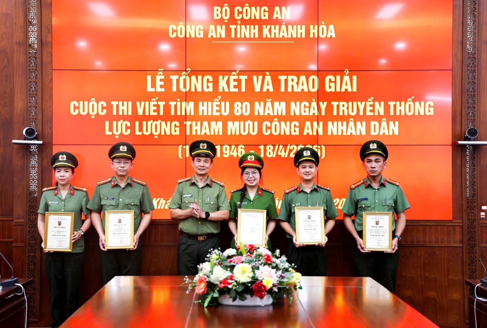 Trên cơ sở kết quả chấm thi, Ban Tổ chức đã trao 5 giải Nhất, 5 giải Nhì, 9 giải Ba cho các tác giả, nhóm tác giả, nhóm tập thể và 3 giải Nhất cho các tập thể. Trong đó, 3 tập thể đạt giải Nhất thuộc về: phòng Tham mưu, Phòng Kỹ thuật Ngoại tuyến và Công an phường Bắc Nha Trang.