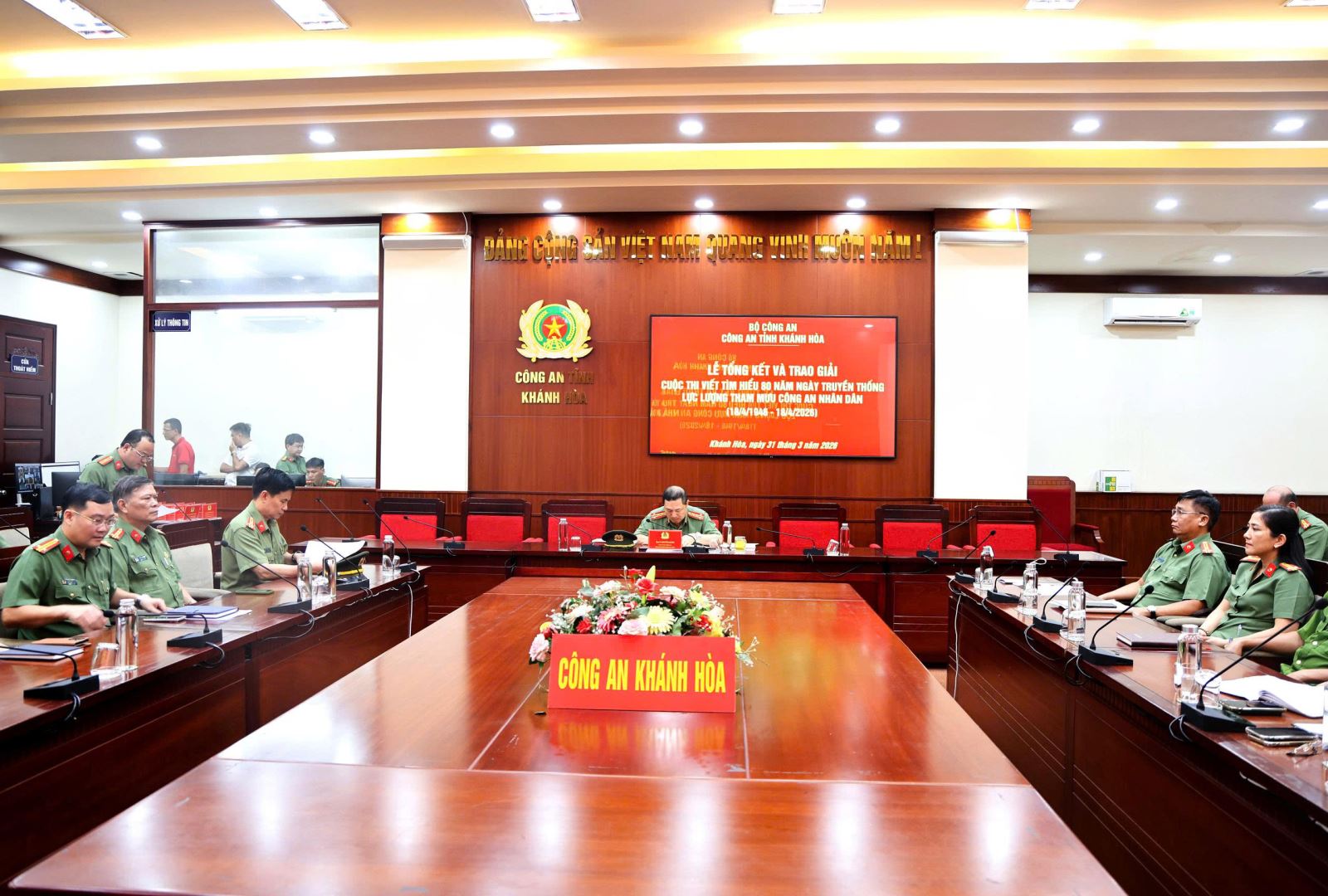 Chiều 31/3, Công an tỉnh Khánh Hòa tổ chức lễ tổng kết và trao giải Cuộc thi viết tìm hiểu 80 năm Ngày truyền thống lực lượng Tham mưu CAND (18/4/1946-18/4/2026). Tham dự có Đại tá Nguyễn Quân, Phó Bí thư Đảng ủy, Phó Giám đốc Công an tỉnh.