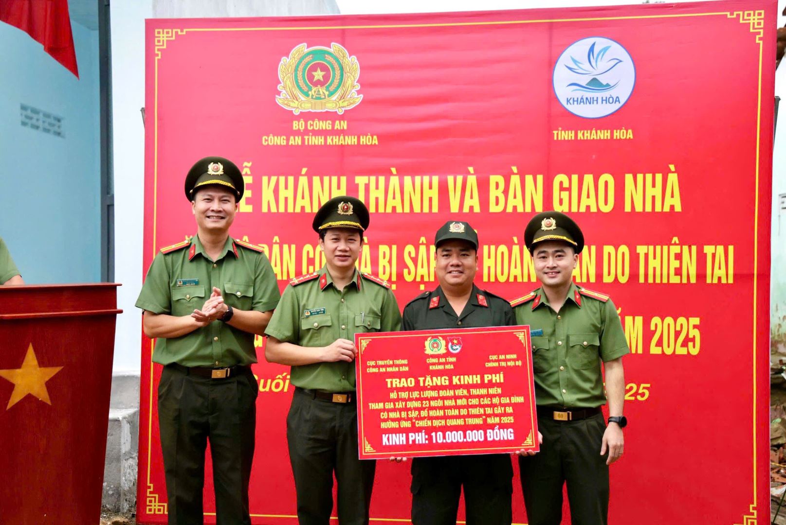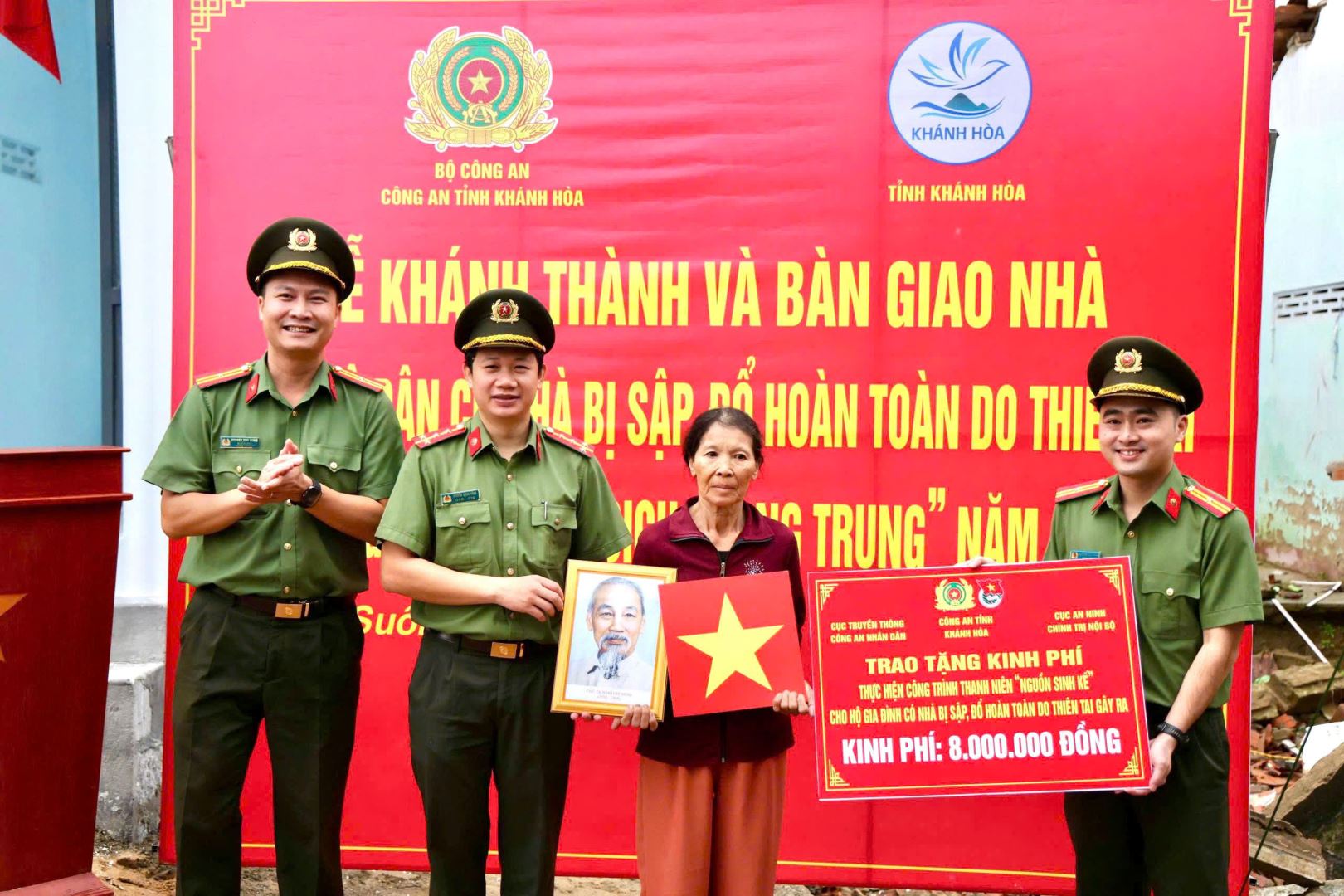 Sáng ngày 26/12, Đoàn Thanh niên Cục Truyền thông Công an nhân dân; Đoàn Thanh niên Cục An ninh Chính trị nội bộ, Bộ Công an phối hợp với Ban thanh niên Công an tỉnh Khánh Hòa tổ chức trao tặng Công trình thanh niên “Nguồn sinh kế” cho 03 hộ gia đình chịu thiệt hại nặng nề do mưa lũ gây ra trên địa bàn tỉnh Khánh Hòa. Đây là công trình thanh niên hưởng ứng chiến dịch Quang Trung do Thủ tướng Chính Phủ phát động, phát huy truyền thống đoàn kết, tương thân tương ái; xung kích tình nguyện của tuổi trẻ Công an nhân dân.
