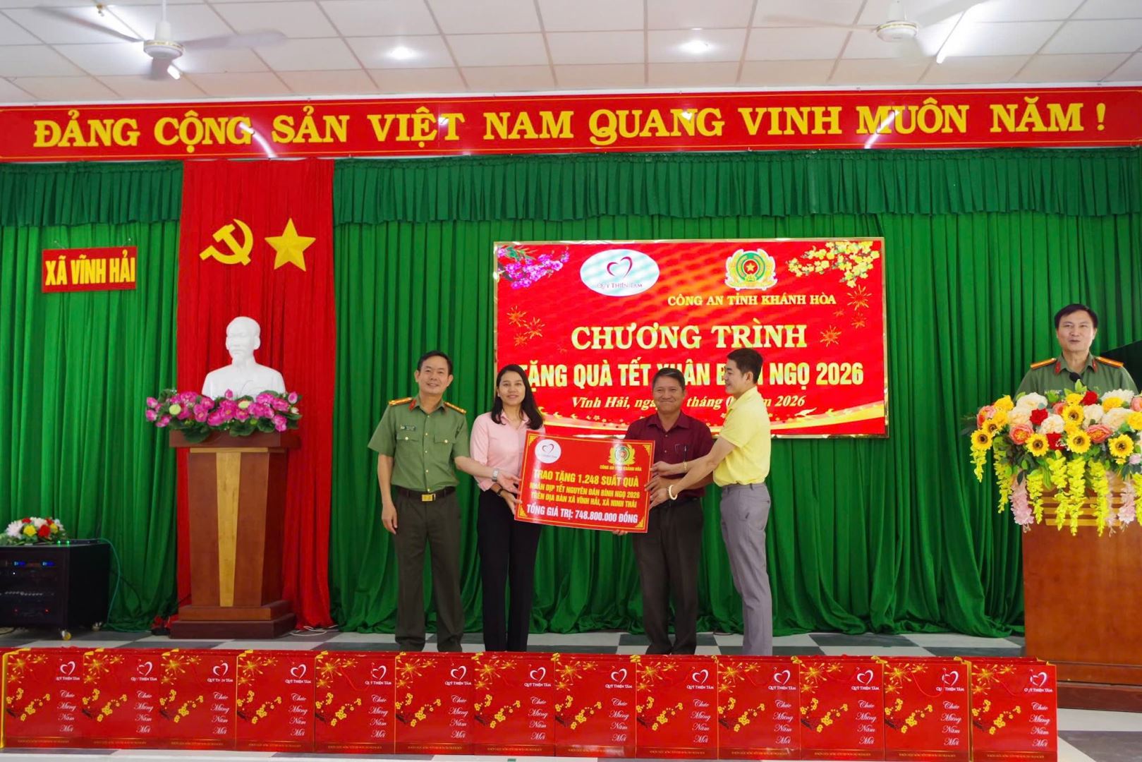Nhằm chung tay chăm lo Tết cho Nhân dân có hoàn cảnh khó khăn vui Xuân, đón Tết Bính Ngọ năm 2026 đầm ấm, nghĩa tình, sáng 28/01/2026, Công an tỉnh phối hợp Quỹ Thiện Tâm (Tập đoàn Vingroup) tổ chức chương trình trao tặng 1.200 suất quà Tết, tổng trị giá hơn 700 triệu đồng cho các hộ gia đình khó khăn trên địa bàn xã Vĩnh Hải và xã Ninh Hải.