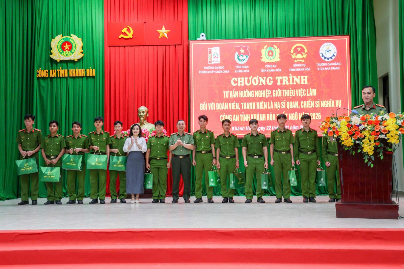 Ngày 22/1, Công an tỉnh Khánh Hòa phối hợp cùng Tỉnh đoàn, Sở Nội vụ, Trường Đại học Phòng cháy chữa cháy (PCCC), Trường Cao đẳng Kỹ thuật Công nghệ Nha Trang tổ chức chương trình tư vấn hướng nghiệp và thông tin thị trường lao động đối với đoàn viên, thanh niên là hạ sĩ quan, chiến sĩ nghĩa vụ Công an Khánh Hòa xuất ngũ năm 2026.