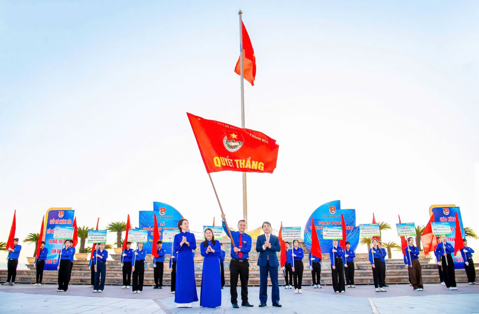 Đồng chí Nghiêm Xuân Thành - Bí thư Tỉnh ủy Khánh Hòa trao Cờ Quyết thắng cho Thường trực Tỉnh đoàn Khánh Hòa.