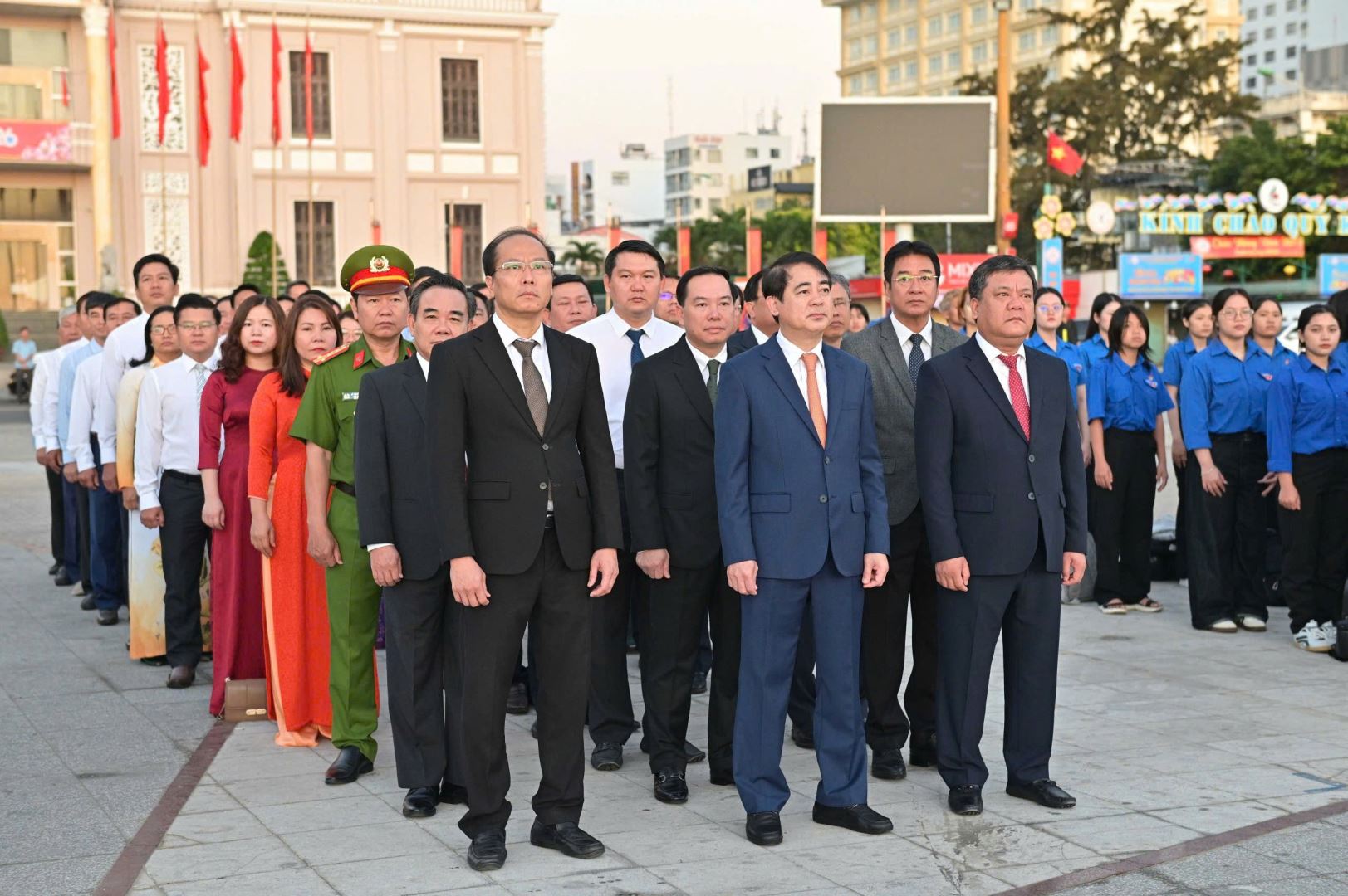 Về phía đại biểu Công an Khánh Hòa, có đồng chí Đại tá Lê Quang Dũng - Ủy viên Ban Thường vụ Đảng ủy, Phó Giám đốc Công an tỉnh Khánh Hòa; các đồng chí Thường trực Ban Thanh niên Công an tỉnh và đông đảo đoàn viên, thanh niên trong lực lượng Công an Khánh Hòa cùng tham dự buổi Lễ.