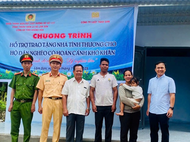 Phát huy tinh thần “Vì nhân dân phục vụ” và hình ảnh người chiến sĩ Cảnh sát giao thông thân thiện – trách nhiệm – nhân văn, ngày 26/7/2025, Đội Cảnh sát giao thông Đường bộ số 1/27 – Phòng Cảnh sát giao thông Công an tỉnh Khánh Hòa đã phối hợp cùng Công ty Luật TNHH QHN và Công an xã Lâm Sơn tổ chức lễ khánh thành và trao tặng nhà tình thương cho gia đình anh Pi Năng Hưng – một hộ dân nghèo có hoàn cảnh đặc biệt khó khăn tại thôn Tầm Ngân 1, xã Lâm Sơn, tỉnh Khánh Hòa.