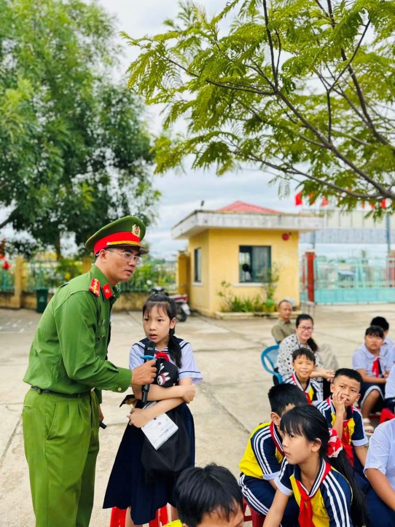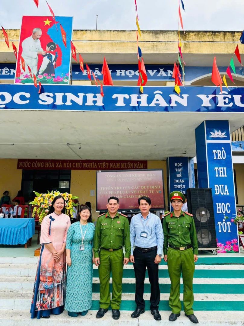 Thực hiện tháng cao điểm an toàn giao thông cho học sinh đến trường, sáng ngày 22/9/2025, Công an phường Ninh Chử đã phối hợp với Trường Tiểu học Dư Khánh tổ chức buổi tuyên truyền pháp luật về trật tự an toàn giao thông cho 1.169 học sinh và 25 giáo viên trong nhà trường.