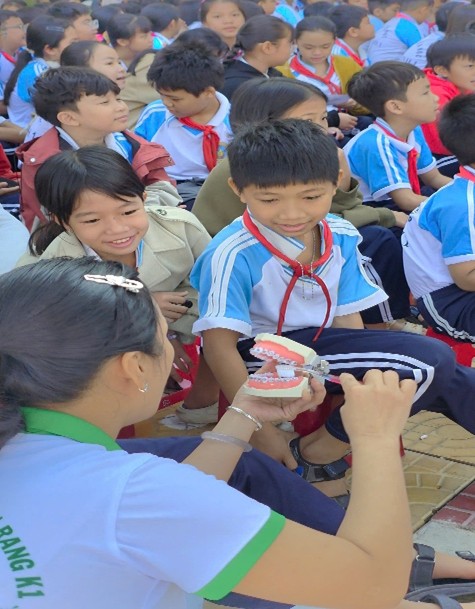 Tại chương trình, các nha sĩ đã hướng dẫn các em học sinh kỹ năng chăm sóc răng miệng đúng cách; đồng thời trao học bổng cho các em học sinh vượt khó học giỏi, rèn luyện tốt.