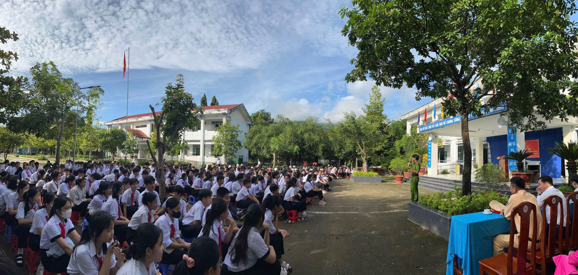 Sáng ngày 13/4, Công an Lâm Sơn phối hợp Trạm 1/27 Phòng Cảnh sát giao thông Công an tỉnh Khánh Hoà, tổ chức tuyên truyền pháp luật về an ninh trật tự, an toàn giao thông với chủ đề “Tuổi trẻ tiên phong – An toàn giao thông, nói không với tội phạm trong tuổi trẻ học đường" cho hơn 560 học sinh trường Trung học cơ sở Lê Lợi.